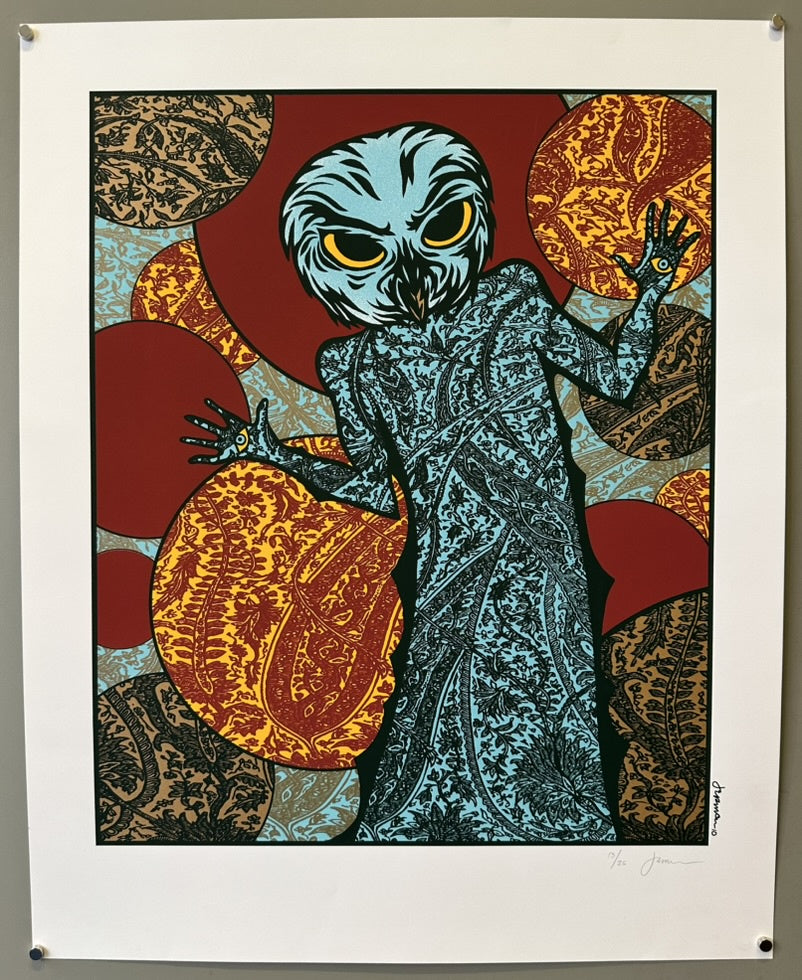 This poster designed by Jermaine Rogers depicts a Welsh owl like figure. Limited Edition. Signed. 13/25