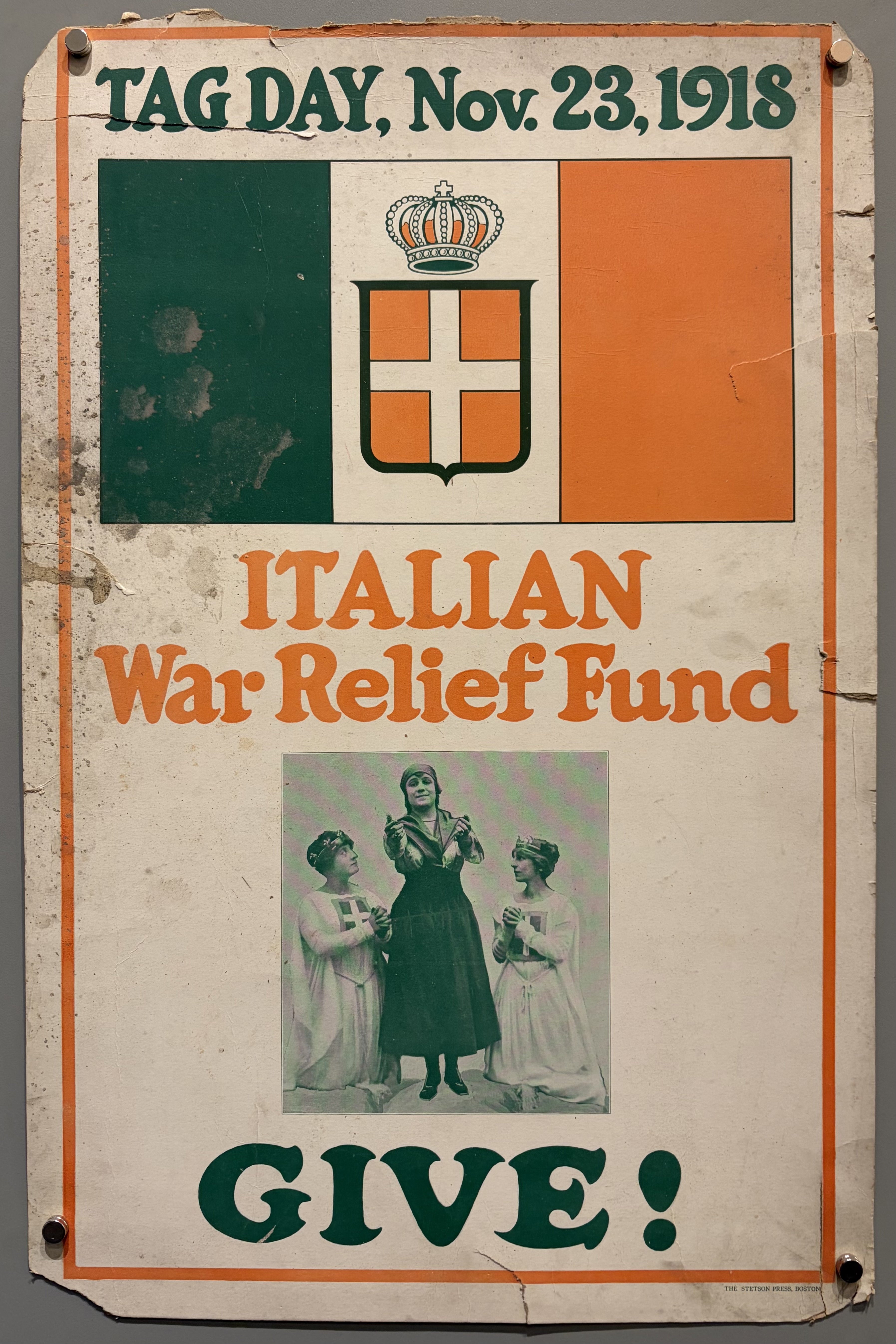 "Tag Day, Nov. 23, 1918 / Italian War Relief Fund / Give!"