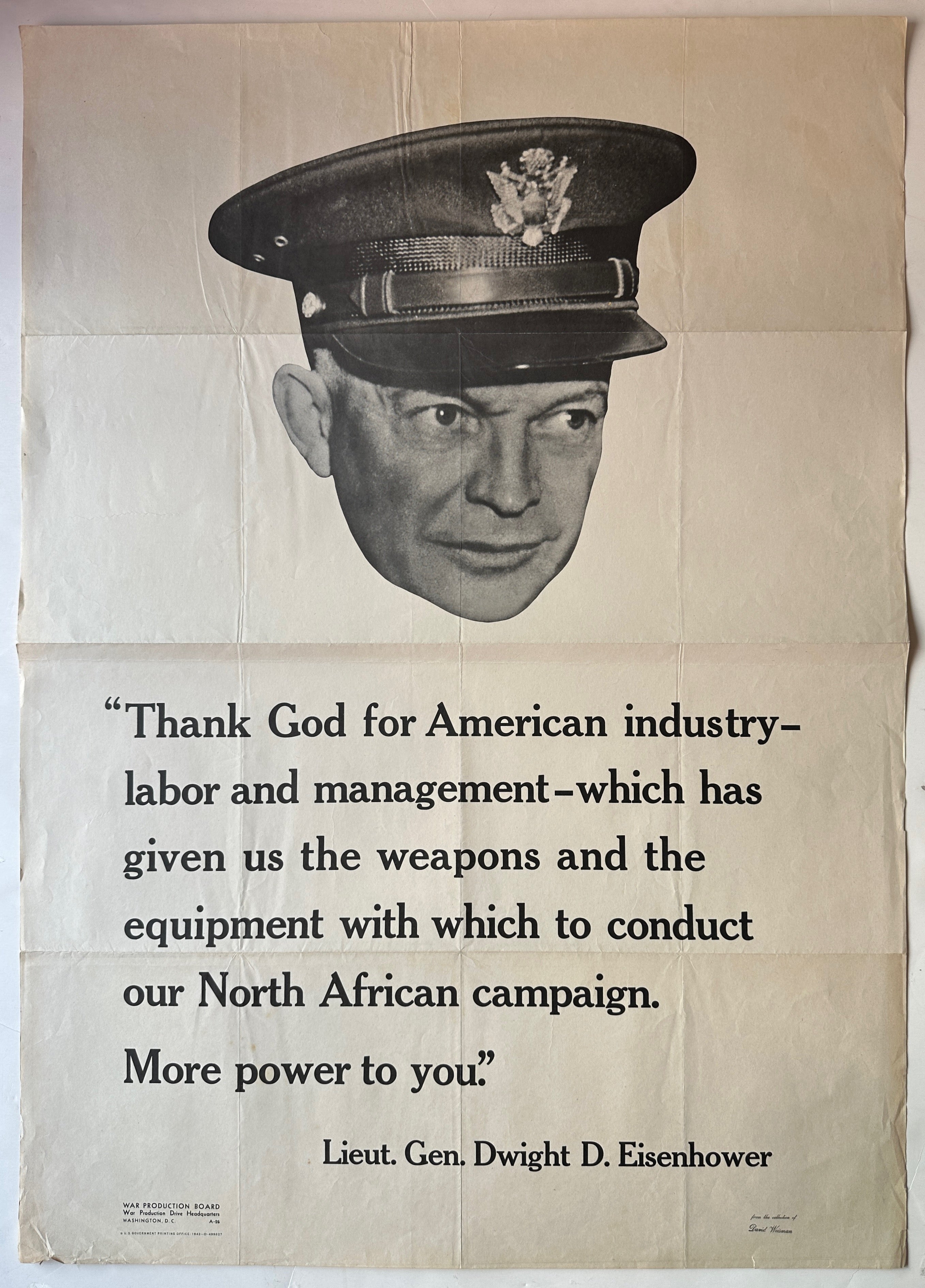"'Thank God for American industry--labor and management--which has given us the weapons and the equipment with which to conduct our North African campaign. More power to you.' Liet. Gen. Dwight D. Eisenhower"