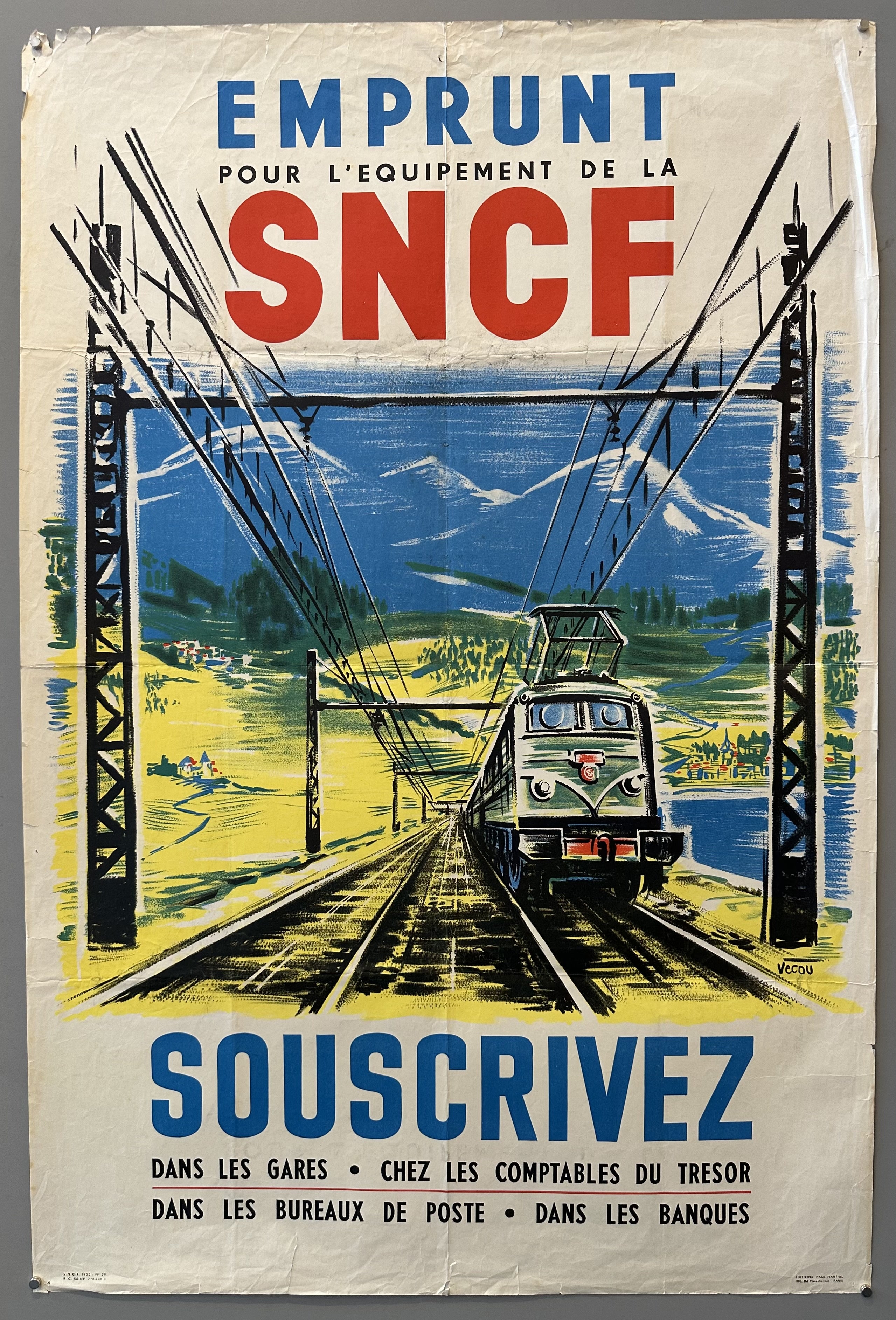A seldom-seen original vintage SNCF poster advertising loans for the railroad.