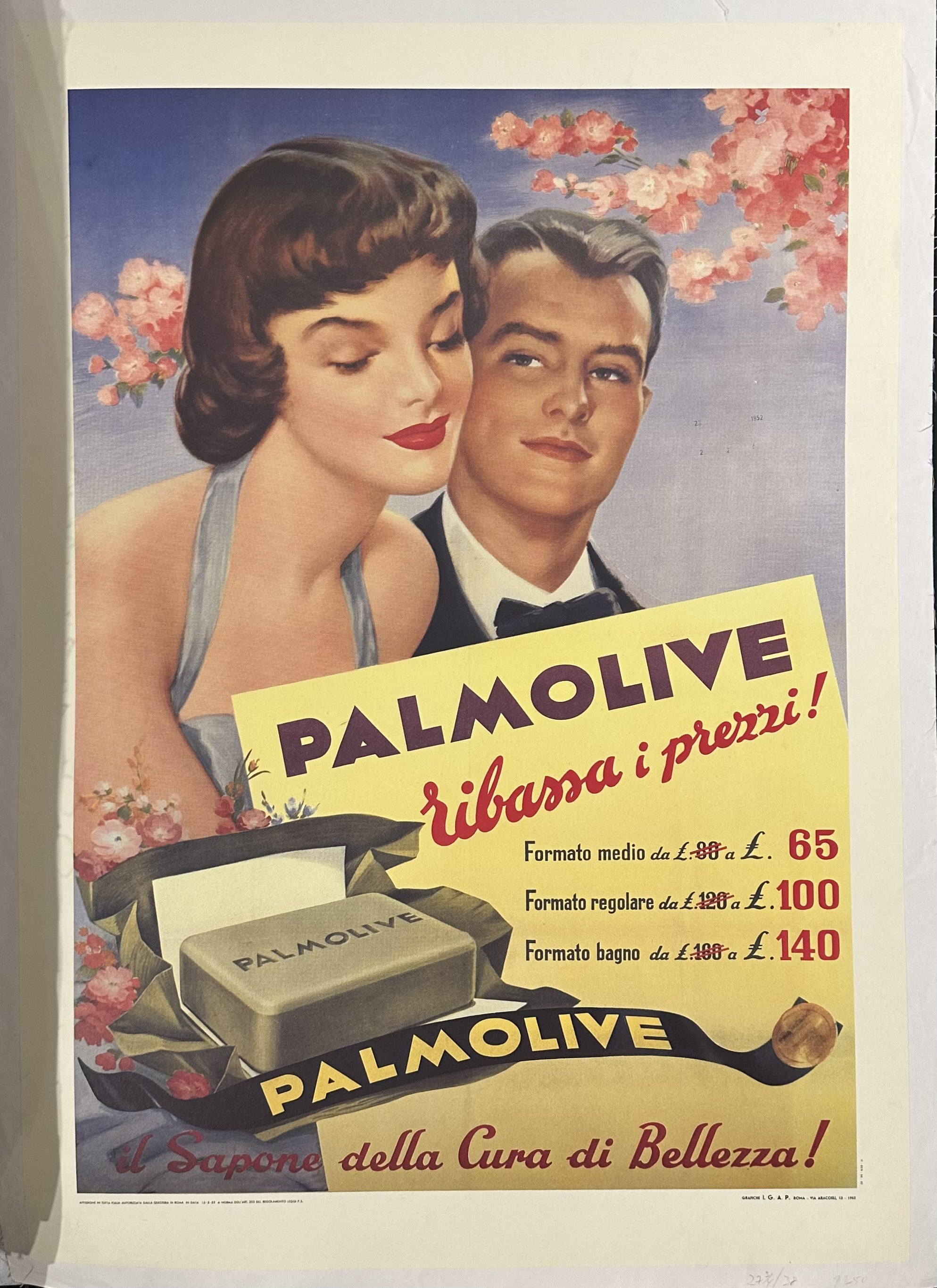 Original Mid-Century Modern poster advertising Palmolive soap.