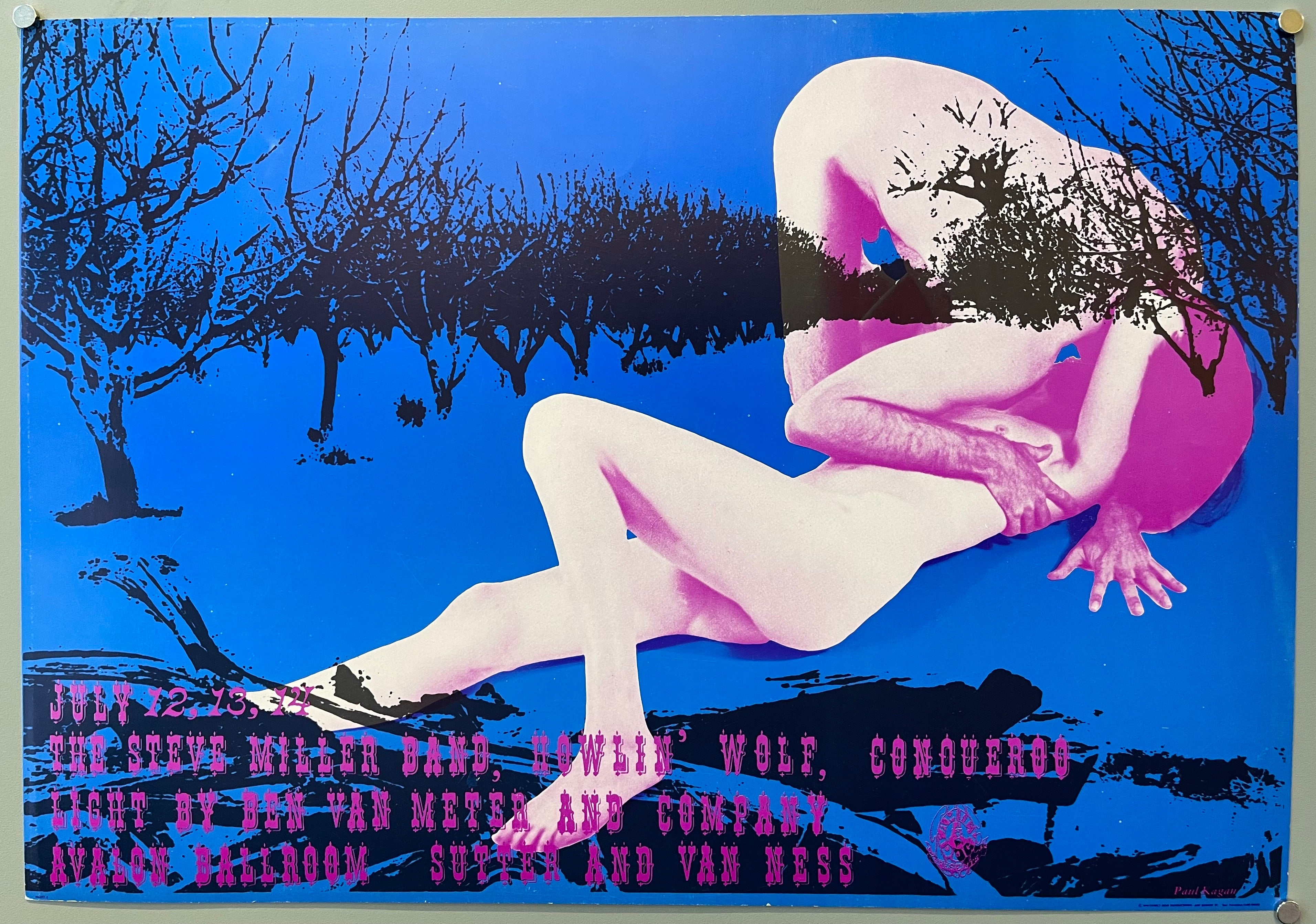 This poster advertises performances by the Steve Miller Band, Howlin' Wolf, and Conqueroo at the Avalon Ballroom in San Francisco on July 12-14, 1968.
