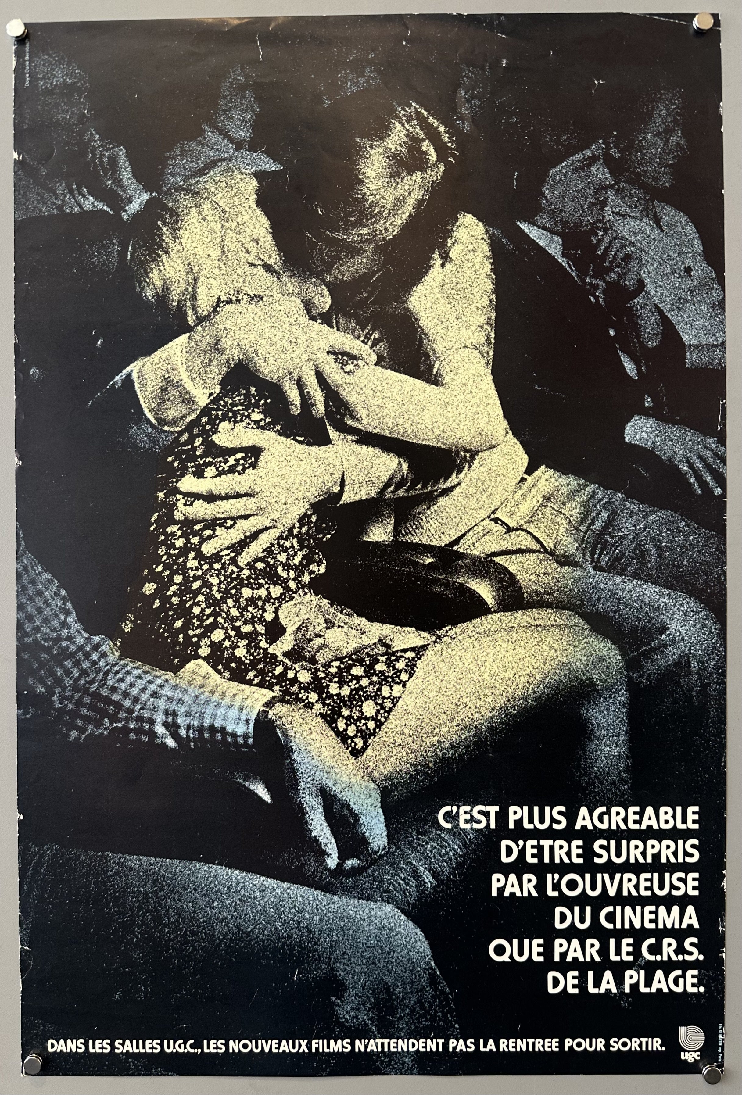 English translation: "It's more pleasant to be surprised by the usherette at the cinema than by the CRS at the beach. / In U.G.C. theaters, new films don't wait for the start of the school year to be released"