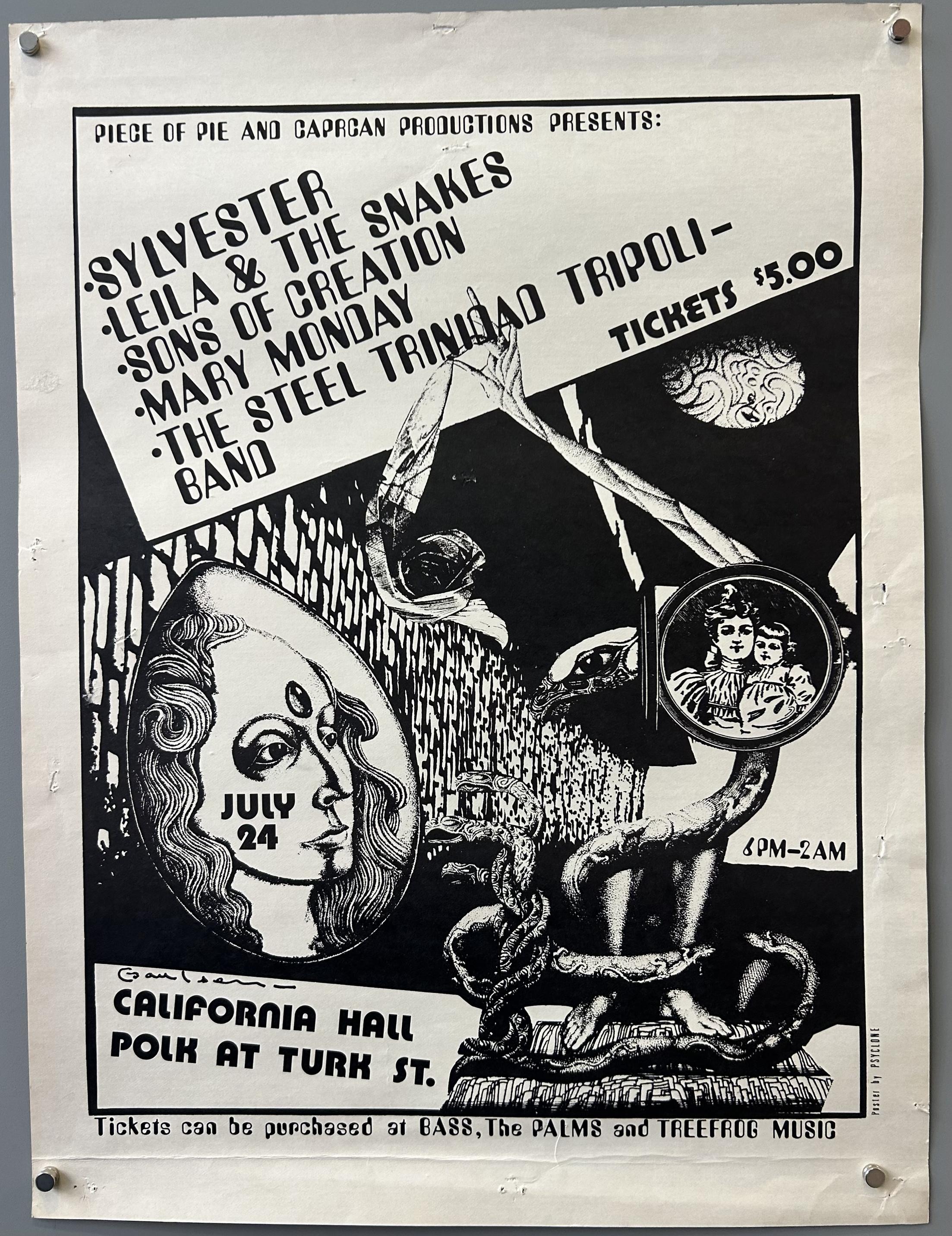 Concert held at the California Hall in San Francisco, headlined by Sylvester, a prominent figure in the disco scene and the LGBTQ+ community in San Francisco.