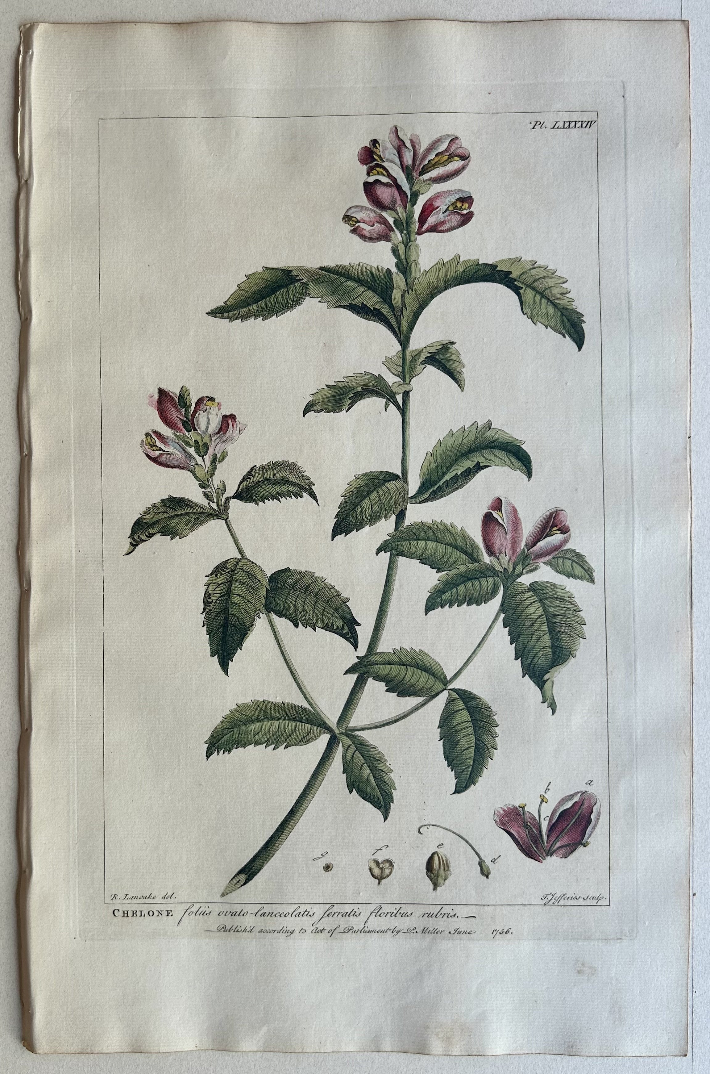 This hand-colored copper plate engraving is part of a collection of prints from the book Figures of the Most Beautiful Plants Described in the Gardeners Dictionary, published by Philip Miller in London in 1770. There were multiple contributing illustrators, including Georg Ehret.