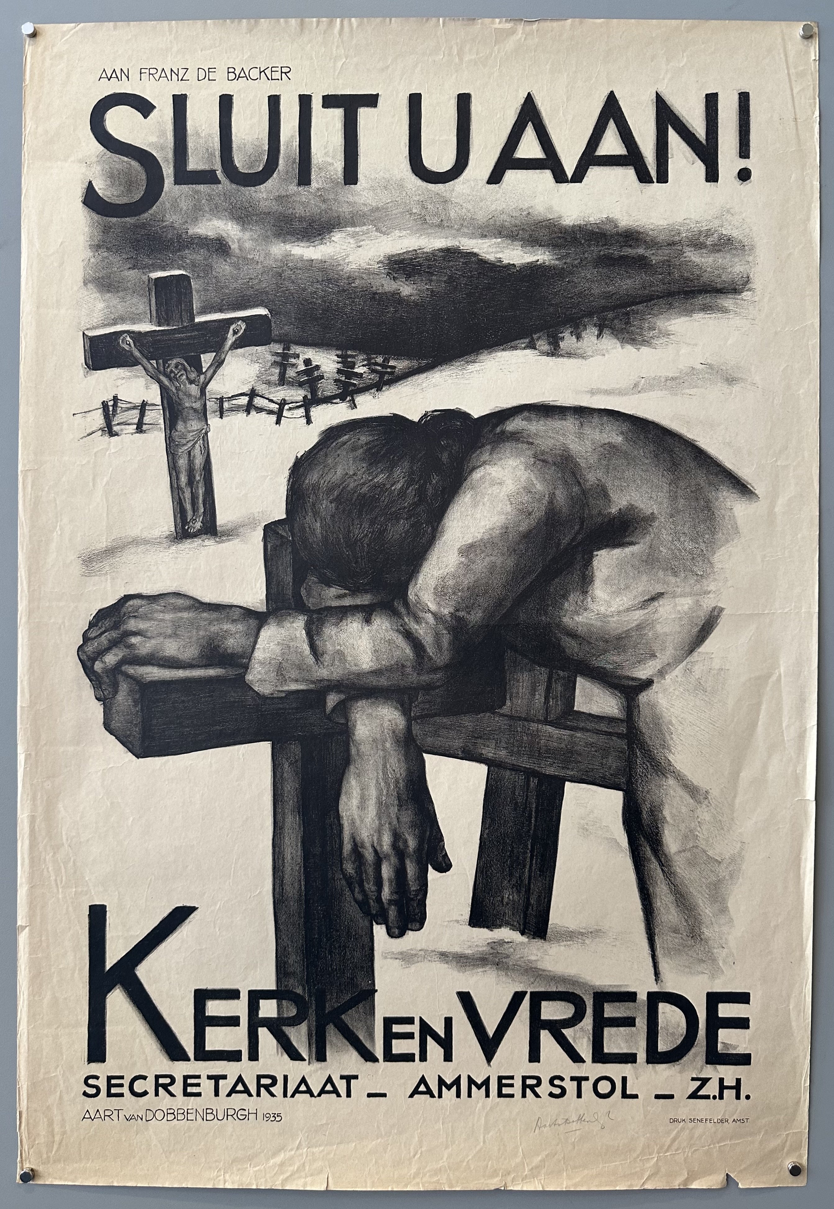 "Aan Franz de Backer / Sluit U Aan! / Kerk en Vrede / Secretariaat - Ammerstol - Z.H."