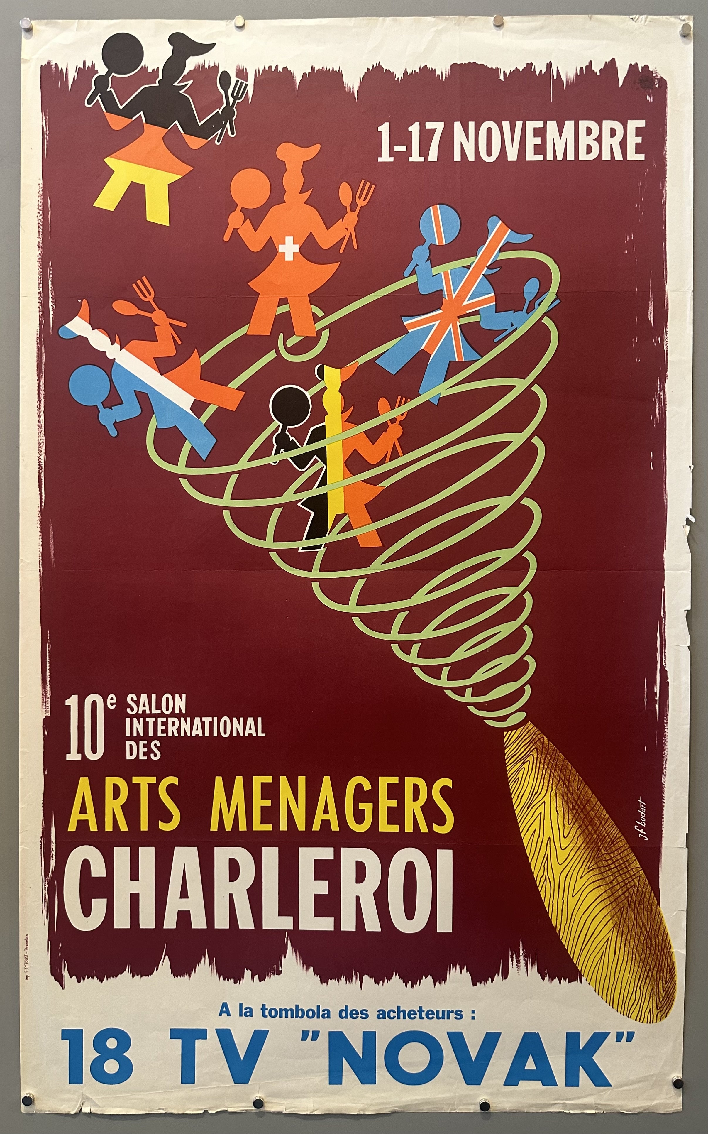 English translation: "1-17 November / 10th International Household Arts Fair Charleroi / Buyers' raffle: 18 'Novak' TVs"