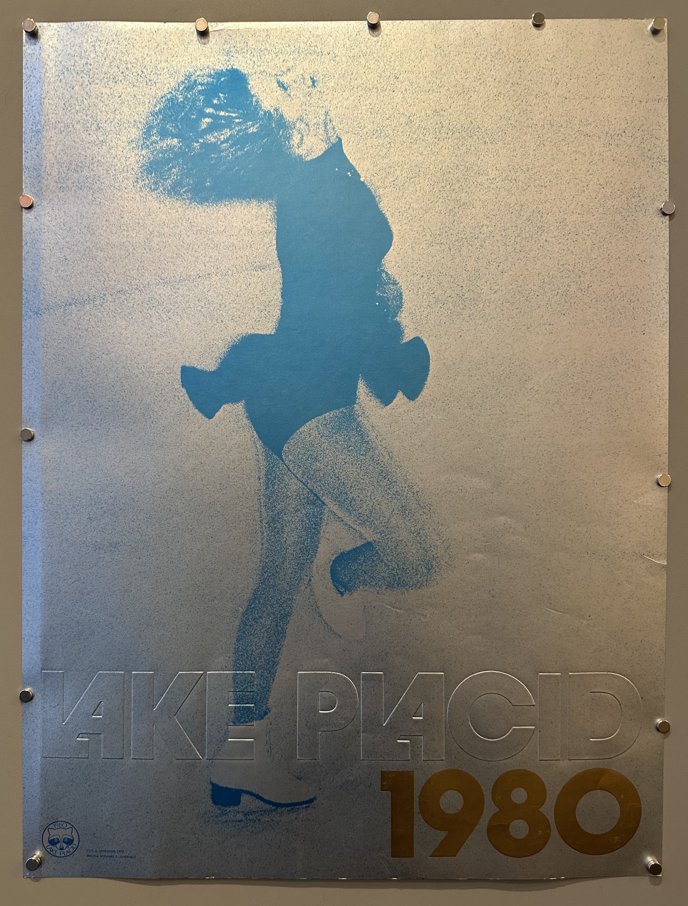 A beautiful image of an ice skater to promote the 1980 Lake Placid winter Olympic games.