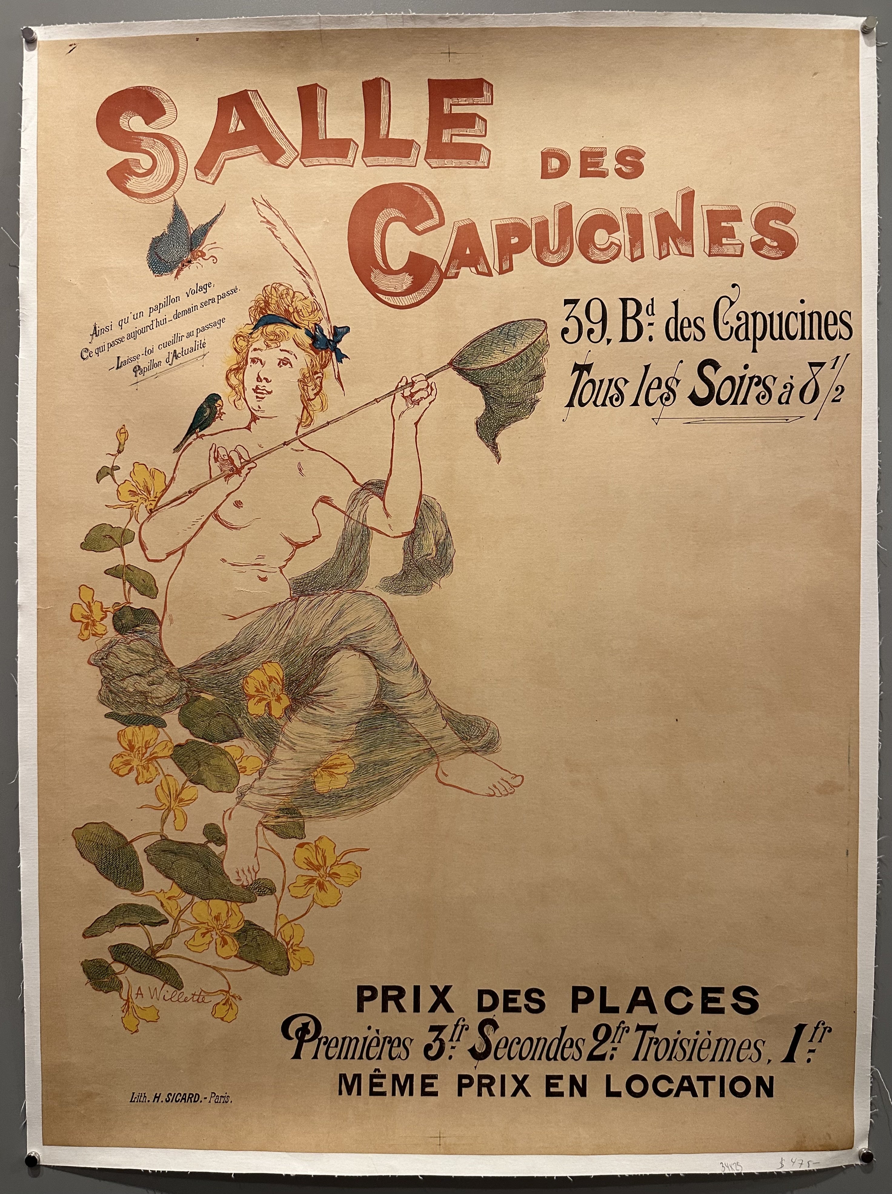 "Salles des Capucines / 39, Bd. des Capucines / Prix des Places / Premières 3fr. Secondes 2fr. Troisièmes, 1fr. Même Prix En Location"