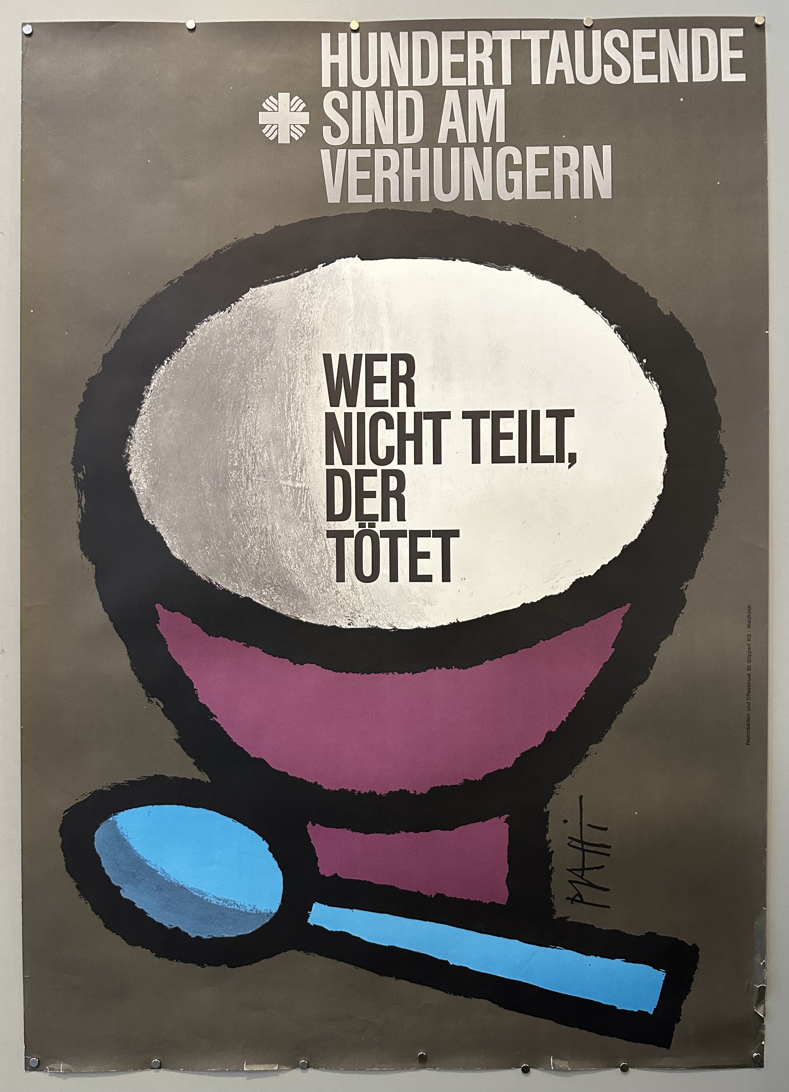 English translation: "Hundreds of thousands are starving / Those who do not share, kill"