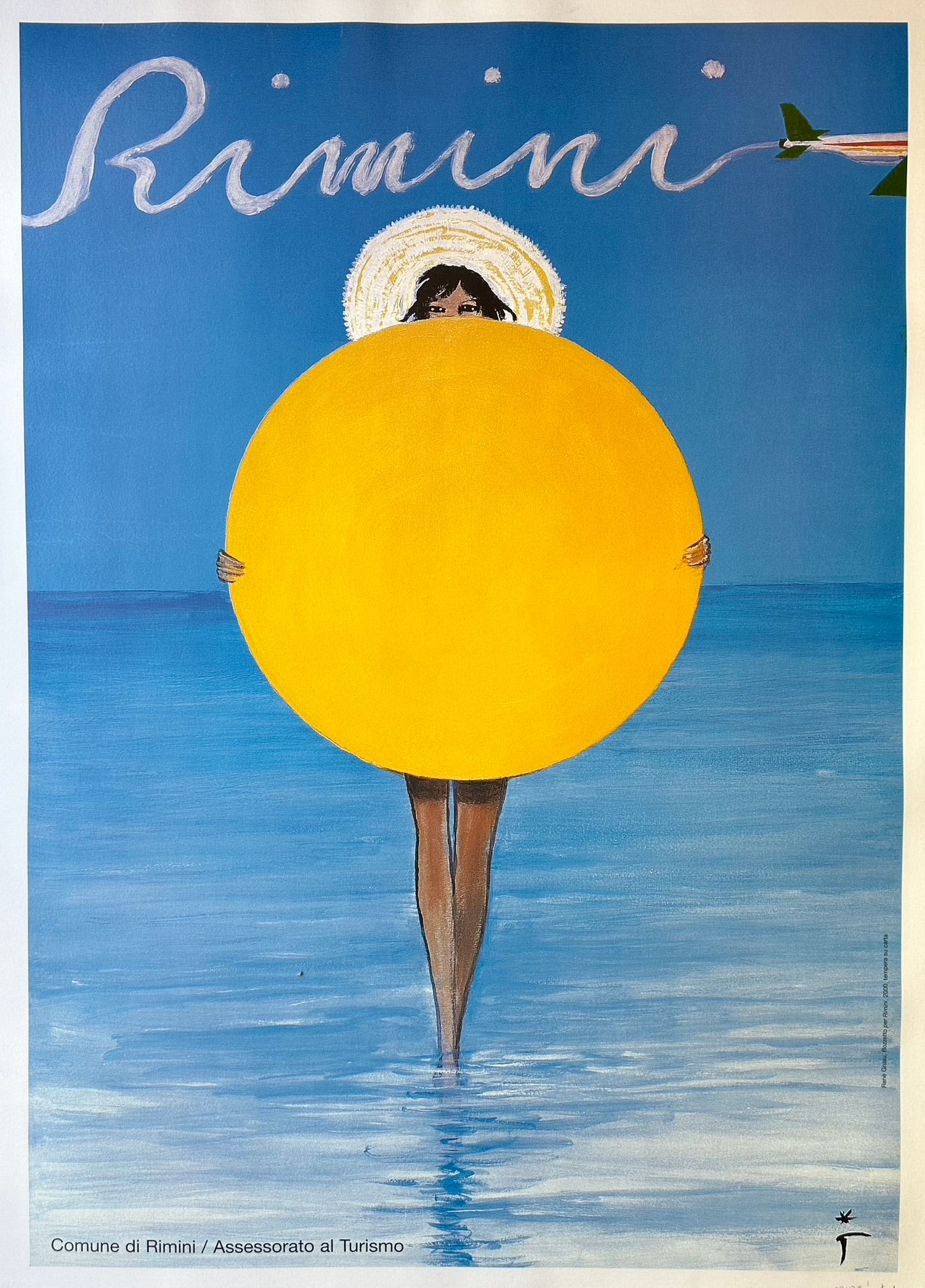 This beautiful travel poster showcases the beautiful beaches of Rimini, Italy.