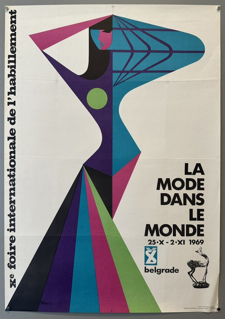 This poster advertises the 25th International Fashion Fair (xe Foire Internationale de l'Habillement) held in Belgrade from October 25 to November 2, 1969.