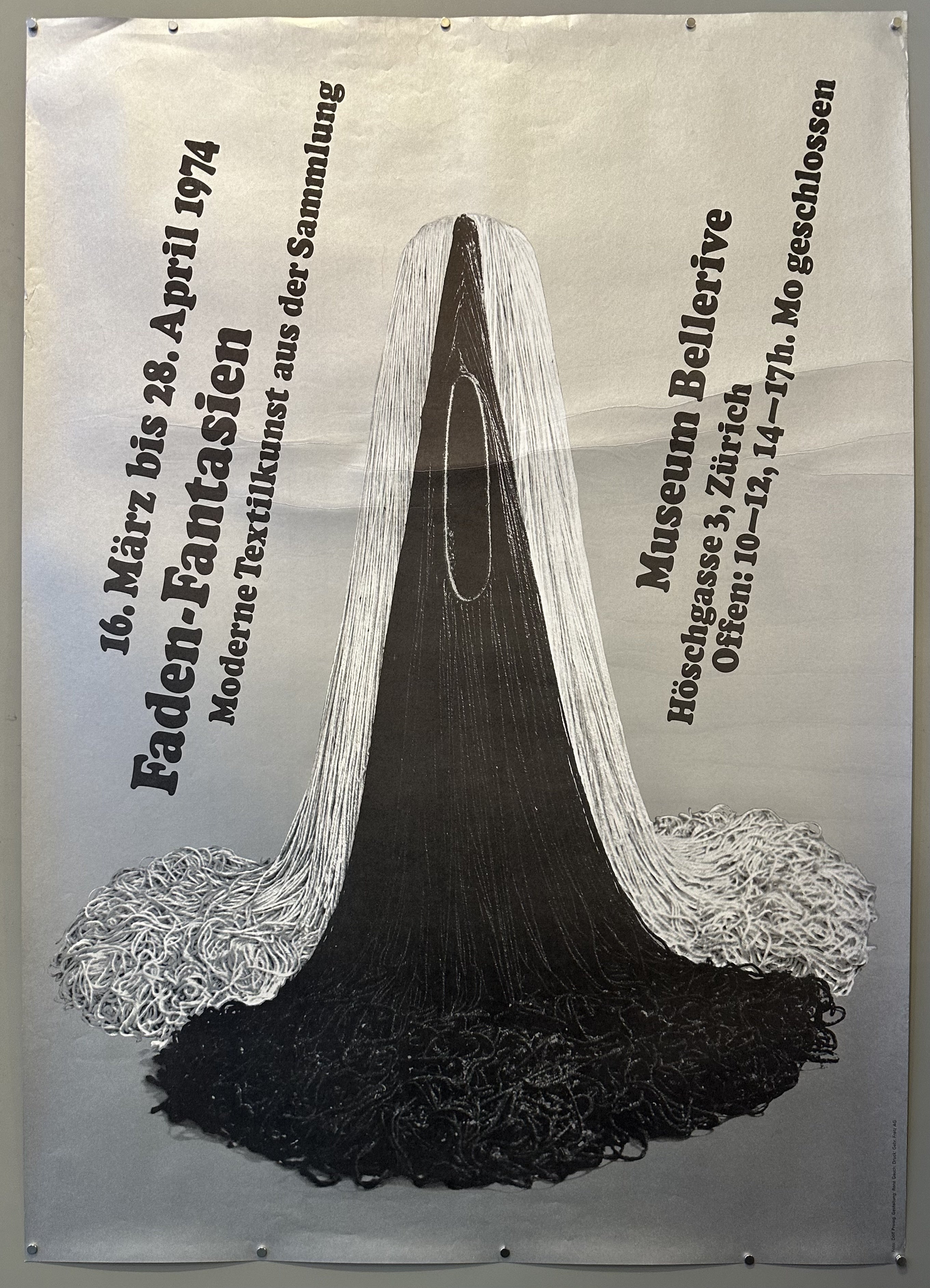 English translation: "16 March to 28 April 1974 / Thread Fantasies / Modern textile art from the collection"