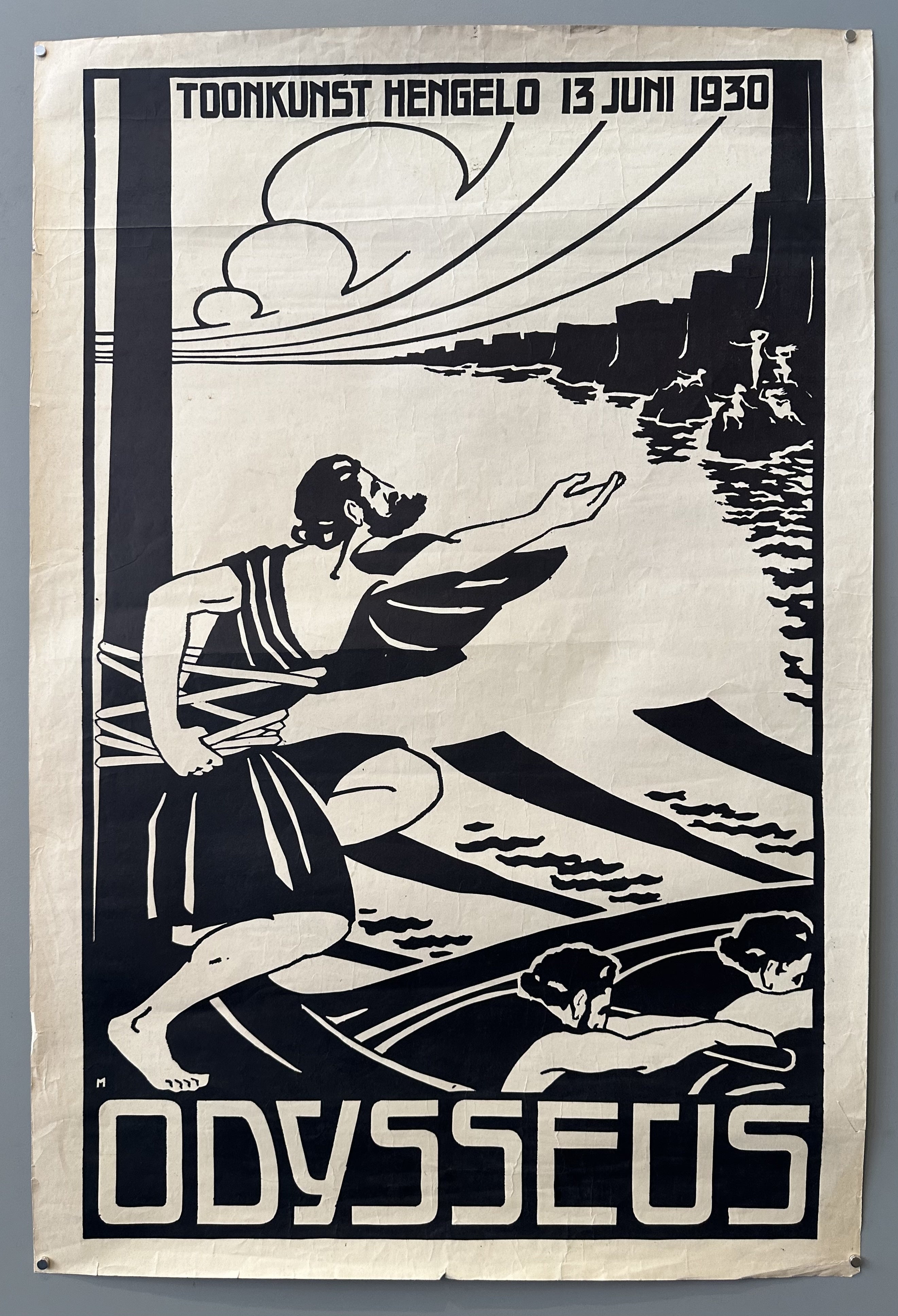 Dutch poster advertising a performance of Odysseus in June 1930. Toonkunst may be connected to the outdated German word Tonkunst, which refers to "sound art," and was used in music history. Hengelo is a city in the Netherlands.