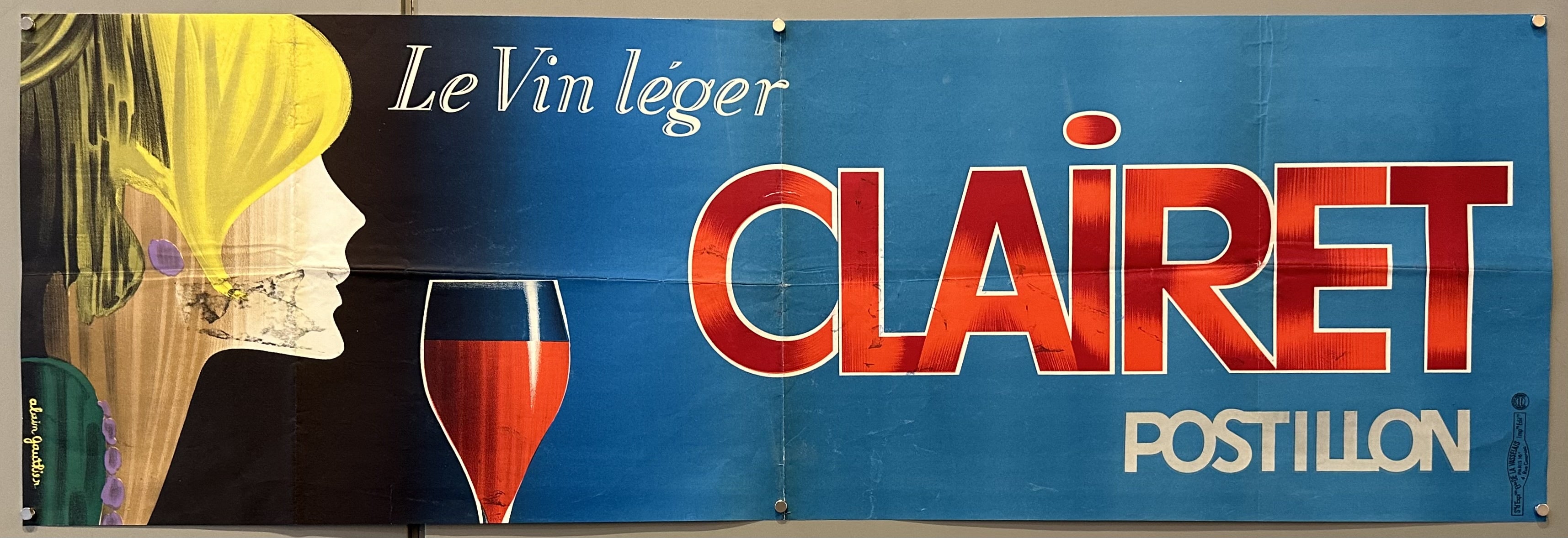 Vintage French advertisement featuring a woman's profile with a glass of Clairet Postillon.