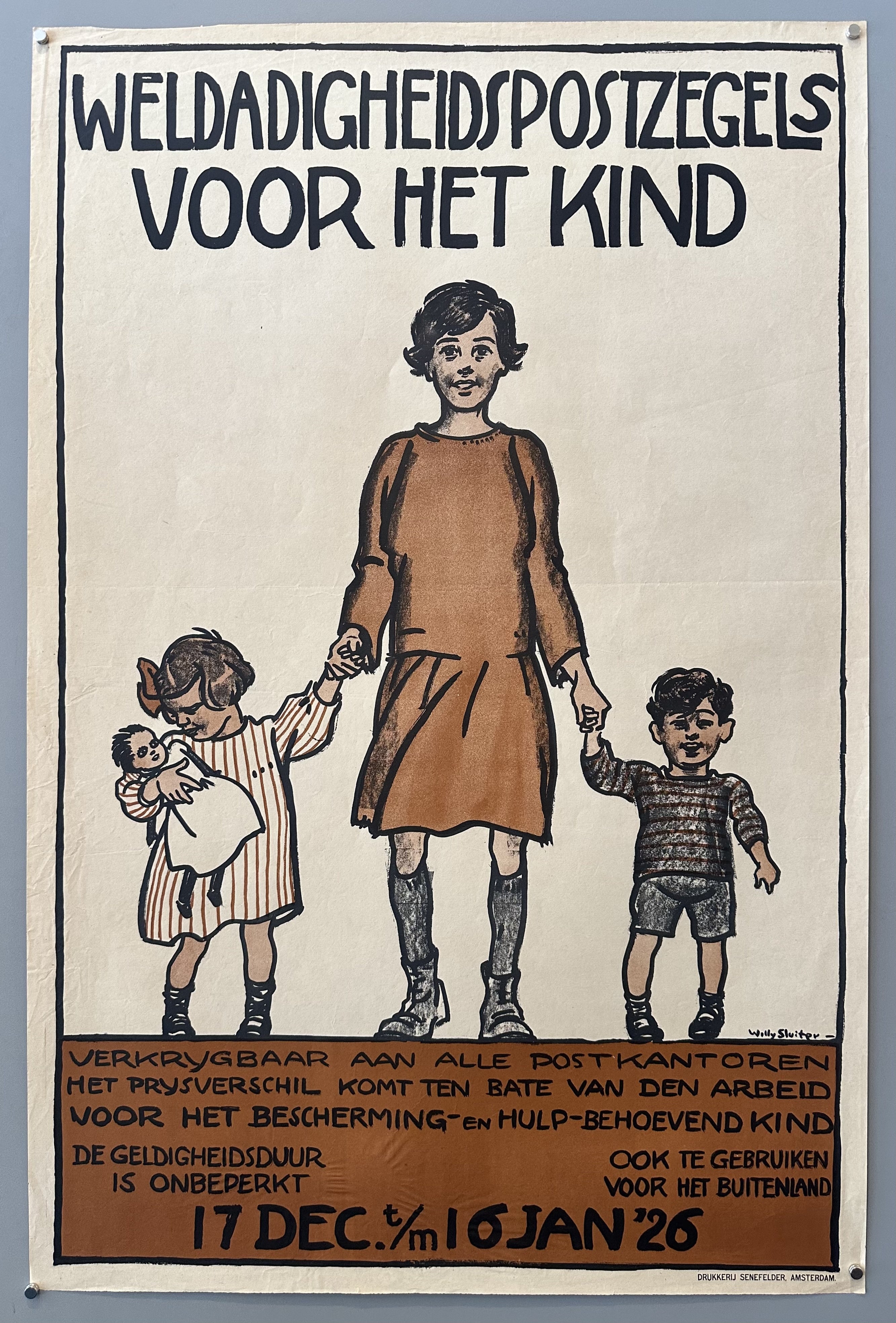 "Weldadigheidspostzegels Voor Het Kind / Verkrygbaar aan alle postkantoren het prysvershil komt ten bate van den arbeid voor het besherming - en hulp-behoevend kind / De geldigheidsduur is onbeperkt / Ook te gebruiken voor het buitenland"