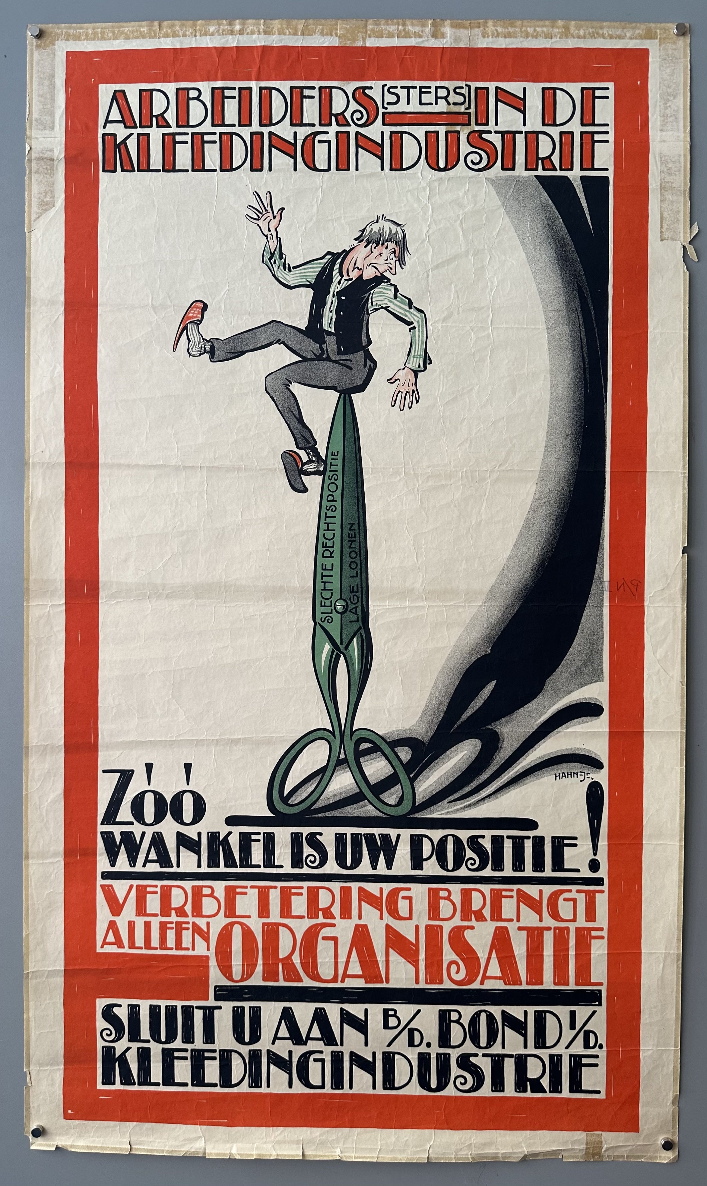 Artist Albert Hahn Jr. designed it for De Bond in de Kleedingindustrie to recruit trade union members.