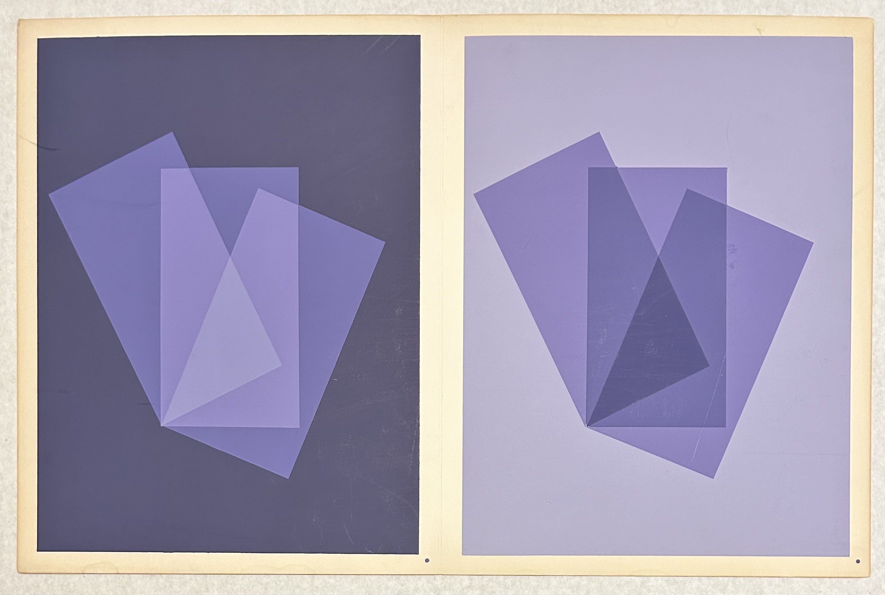 Screenprint of rectangles in different shades of purple. Silkscreen printed (serigraph).