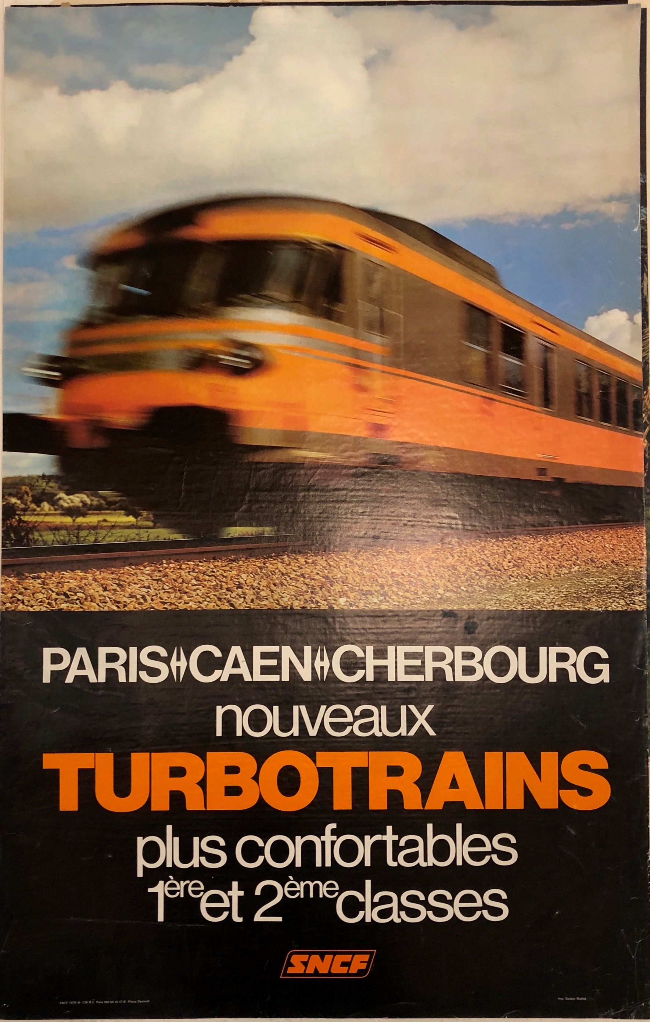 Translation: Paris, Caen, Cherbourg, new Turbotrains, more comfortable 1st and 2nd class.