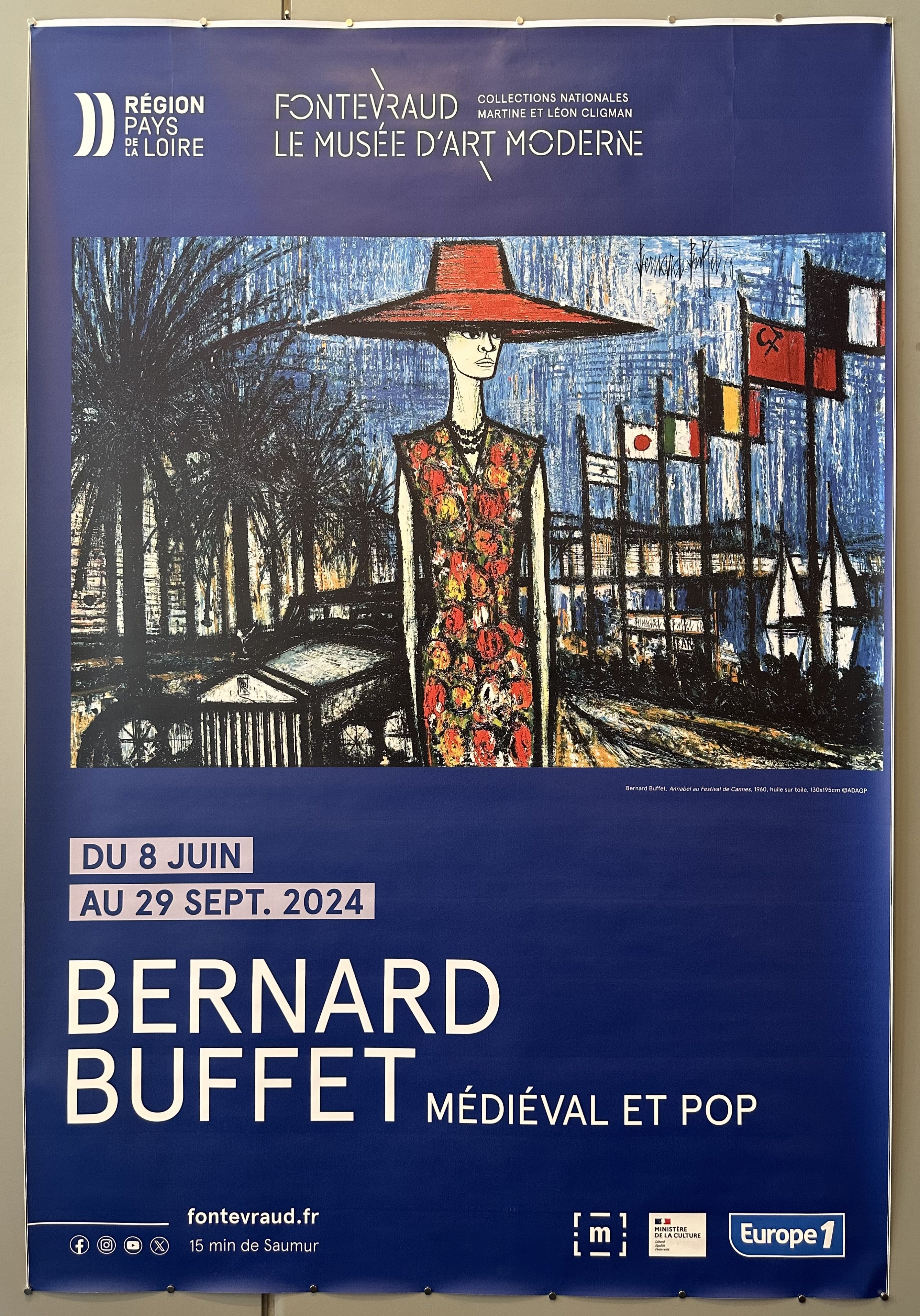 English translation: "Fontevraud Museum of Modern Art / Martine and Léon Cligman National Collections / From June 8 to September 29, 2024 / Bernard Buffet Medieval and Pop"