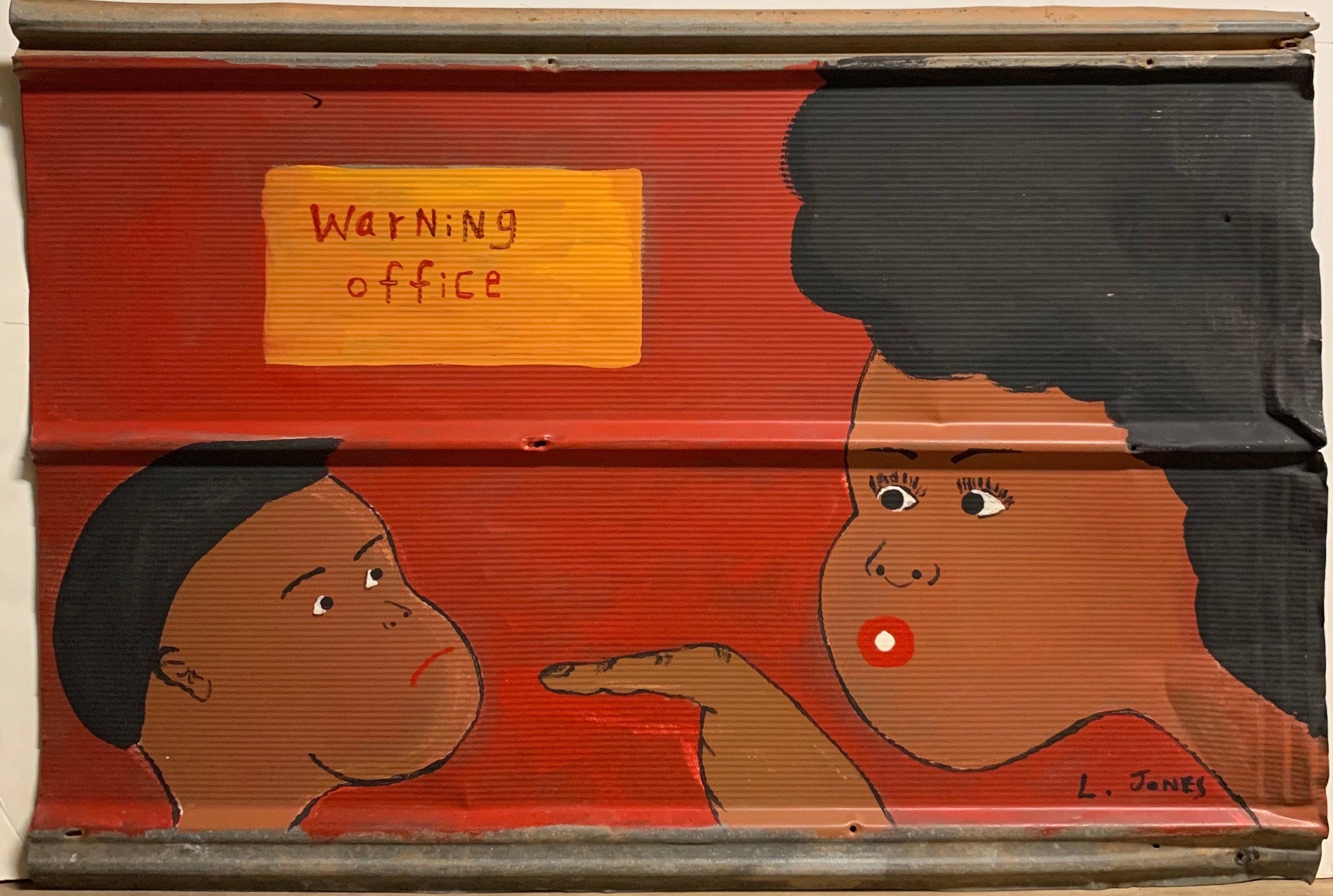 A native Georgian, Leonard Jones taught himself to paint when he was in high school. His works are greatly inspired by scenes from his childhood, images of rural living in the South including housewives, church-goers, and laborers. A folk artist who is often considered an outsider, Jones paints to capture candid daily life and the beauty found in the community around him.The use of scrap wood or tin roofing alludes to the buildings he grew up with, and he often incorporates these materials into the paintings themselves. The materials are covered in bold backgrounds of color, which Jones paints subjects over using his fingers or the handles of brushes, leaving a distinctly Leonard Jones work of art.