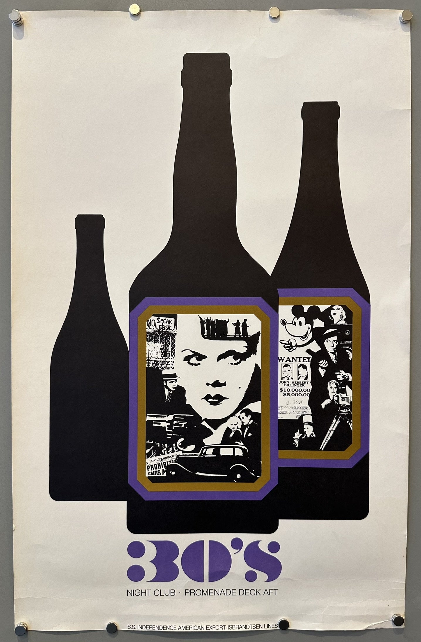 travel advertisement for the SS Independence, an American-built passenger liner operated by American Export-Isbrandtsen Lines. The poster promotes the ship's "30'S NIGHT CLUB" located on the "PROMENADE DECK AFT