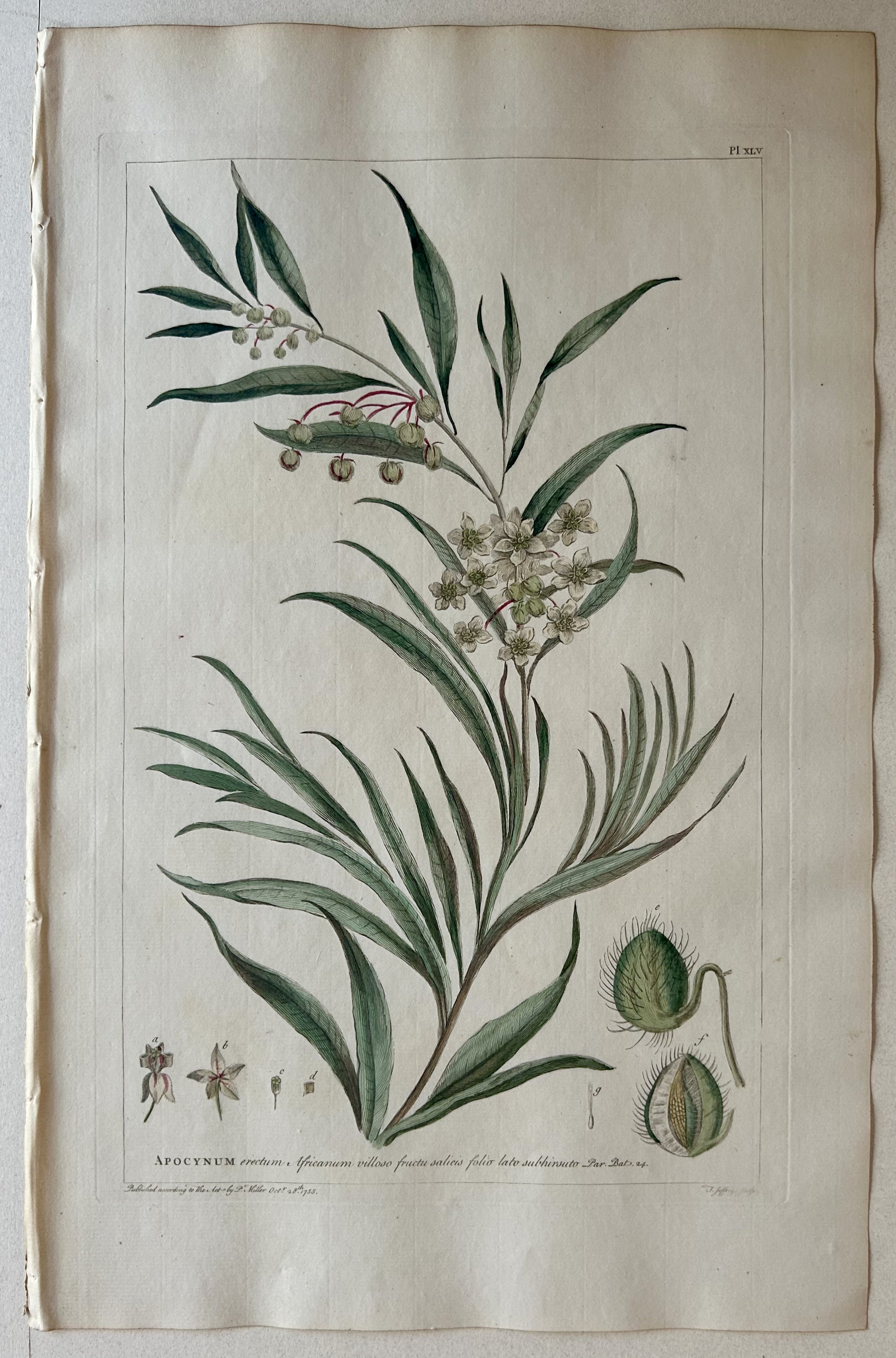 This hand-colored copper plate engraving is part of a collection of prints from the book Figures of the Most Beautiful Plants Described in the Gardeners Dictionary, published by Philip Miller in London in 1770. There were multiple contributing illustrators, including Georg Ehret.