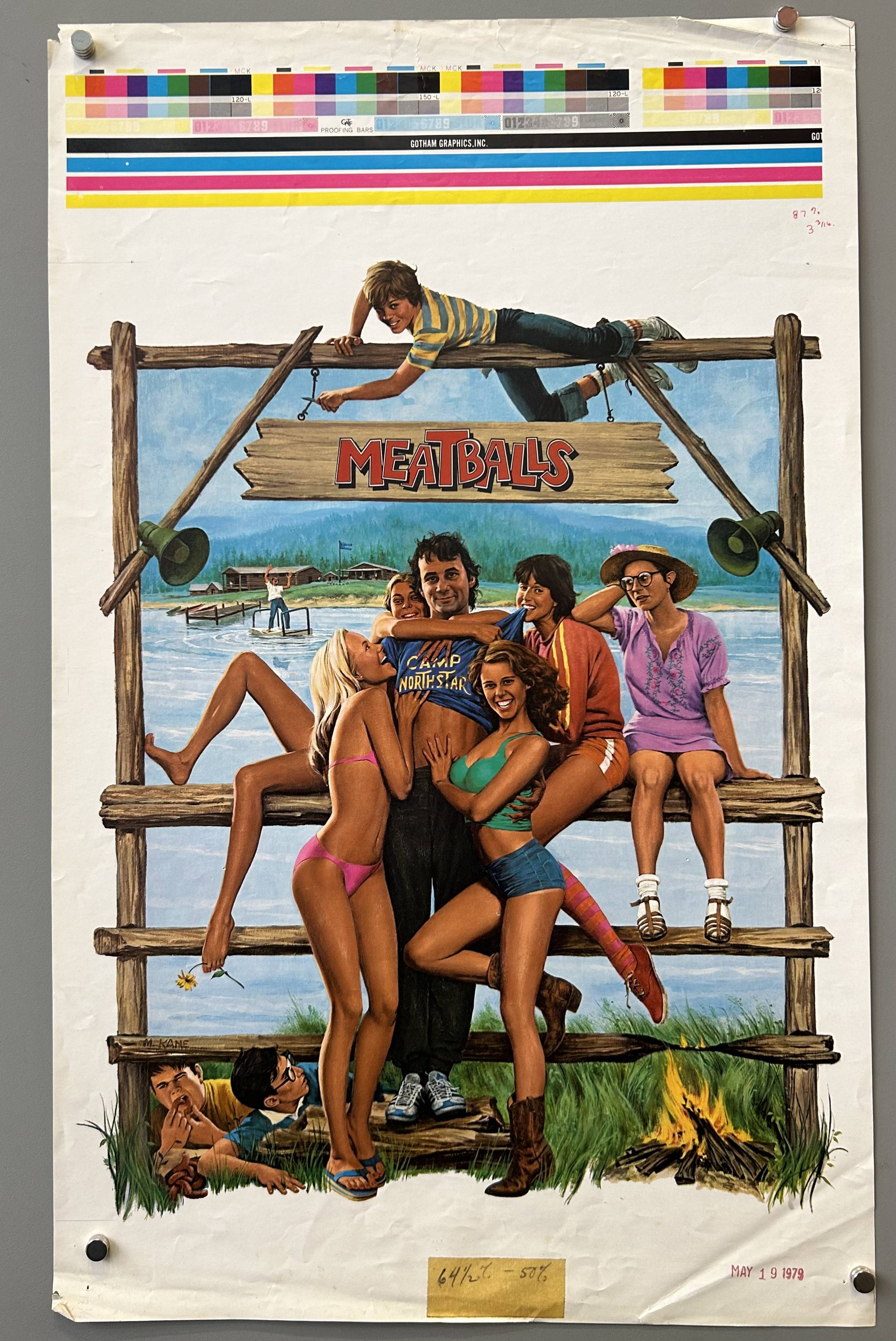 Promoting the 1979 comedy film Meatballs, directed by Ivan Reitman and starring Bill Murray in his first leading role. It tells the story of a charismatic head counselor, Tripper Harrison, who befriends a shy camper named Rudy and leads the campers in a competition against a rival camp.