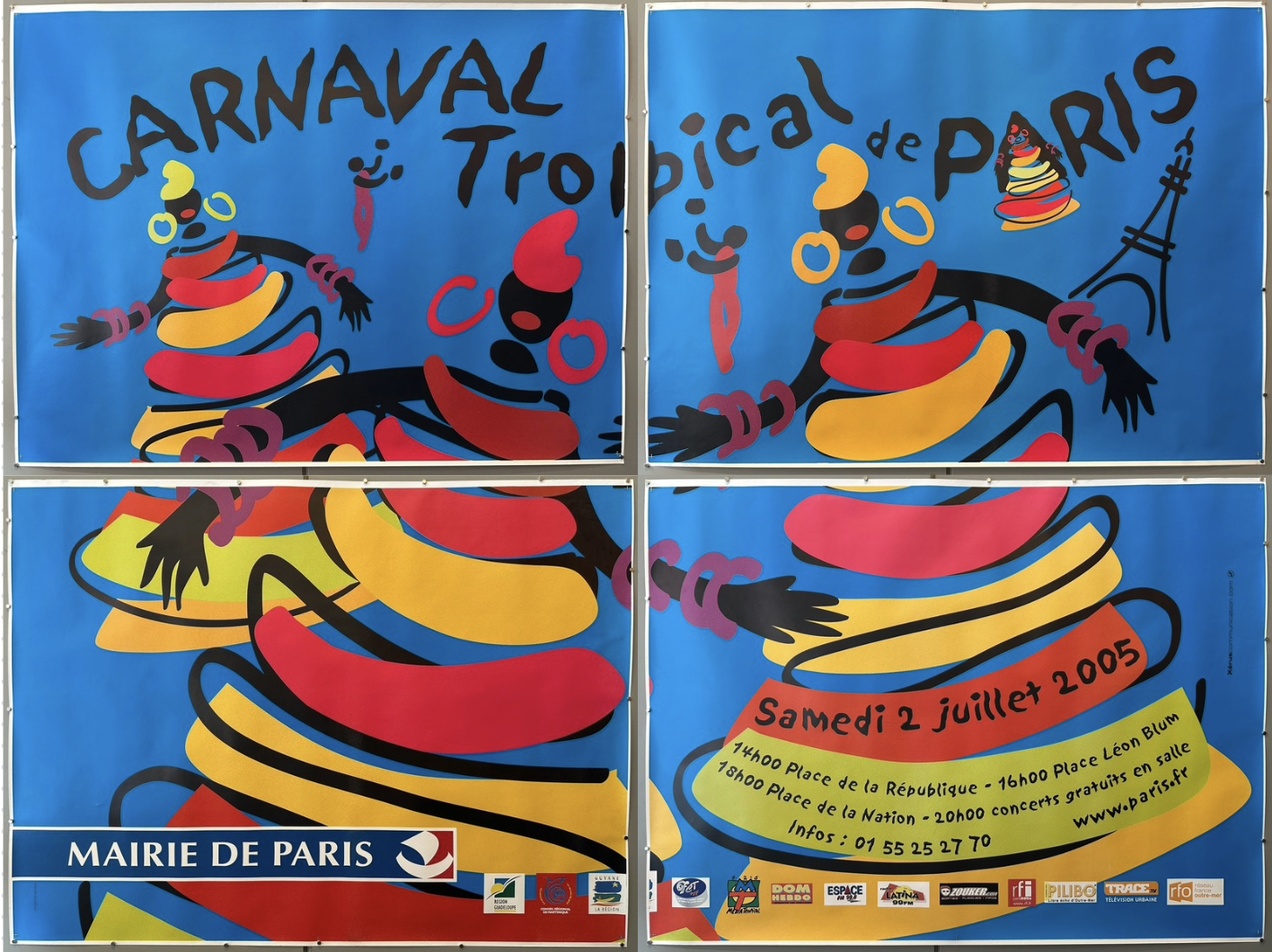 Promotes the Carnaval Tropical de Paris, specifically the event held on Saturday, July 2, 2005