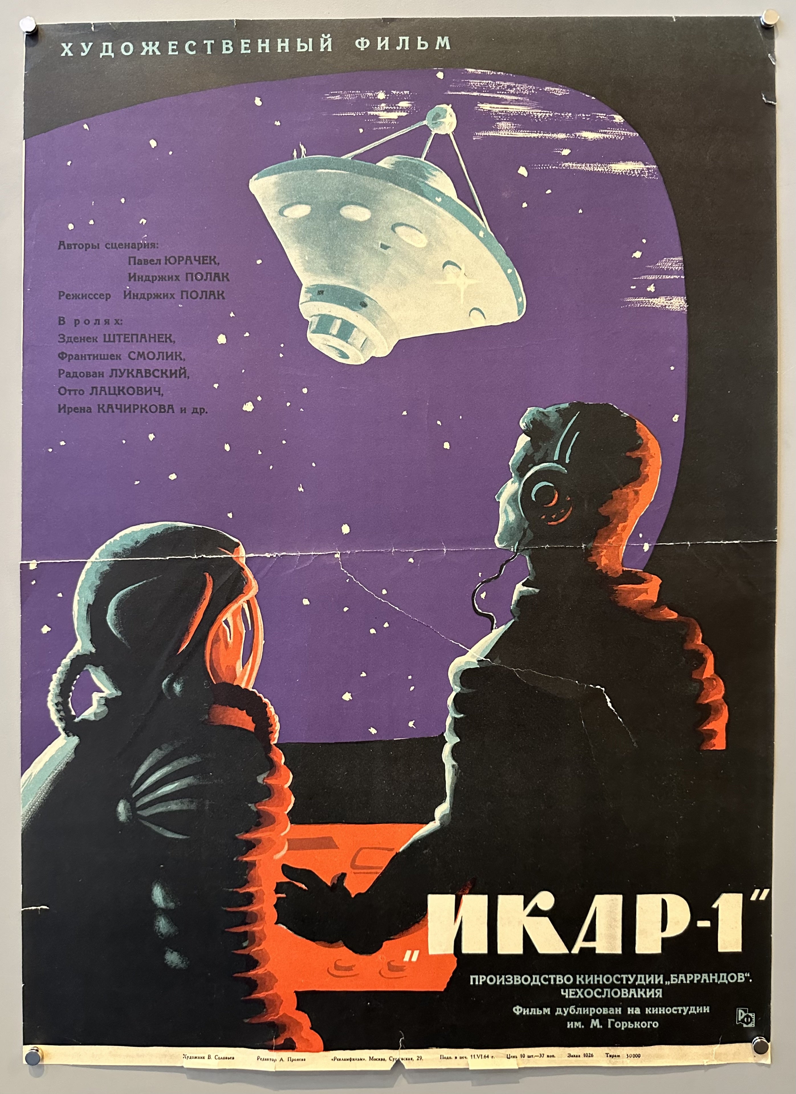 A Soviet film poster for 'Ikarie XB 1', a Czech movie from 1963. Its English title is 'Voyage to the End of the Universe'.
