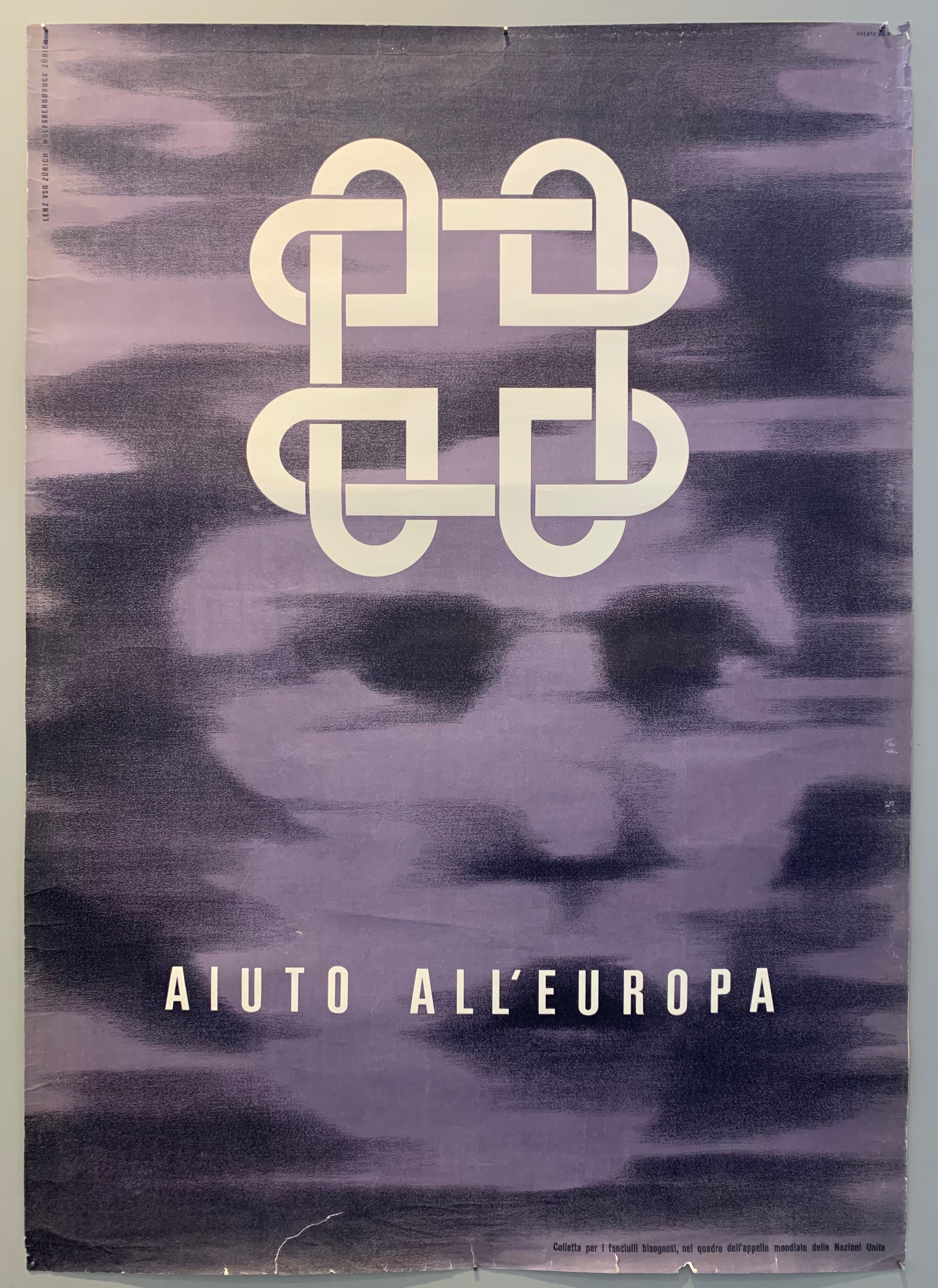 This stunning vintage poster was designed to promote charity to Europe in the aftermath of World War 2. Poverty hit many of the European countries hard and a lot of cities were still in rubble. The design of this vintage poster is fantastic -- a motif symbolizing unity is in simple white, as is the text, but the background is quite complex, as the shadow of a person's face can be made out in the strokes of purple and black. The MoMA actually has this poster in their collection.