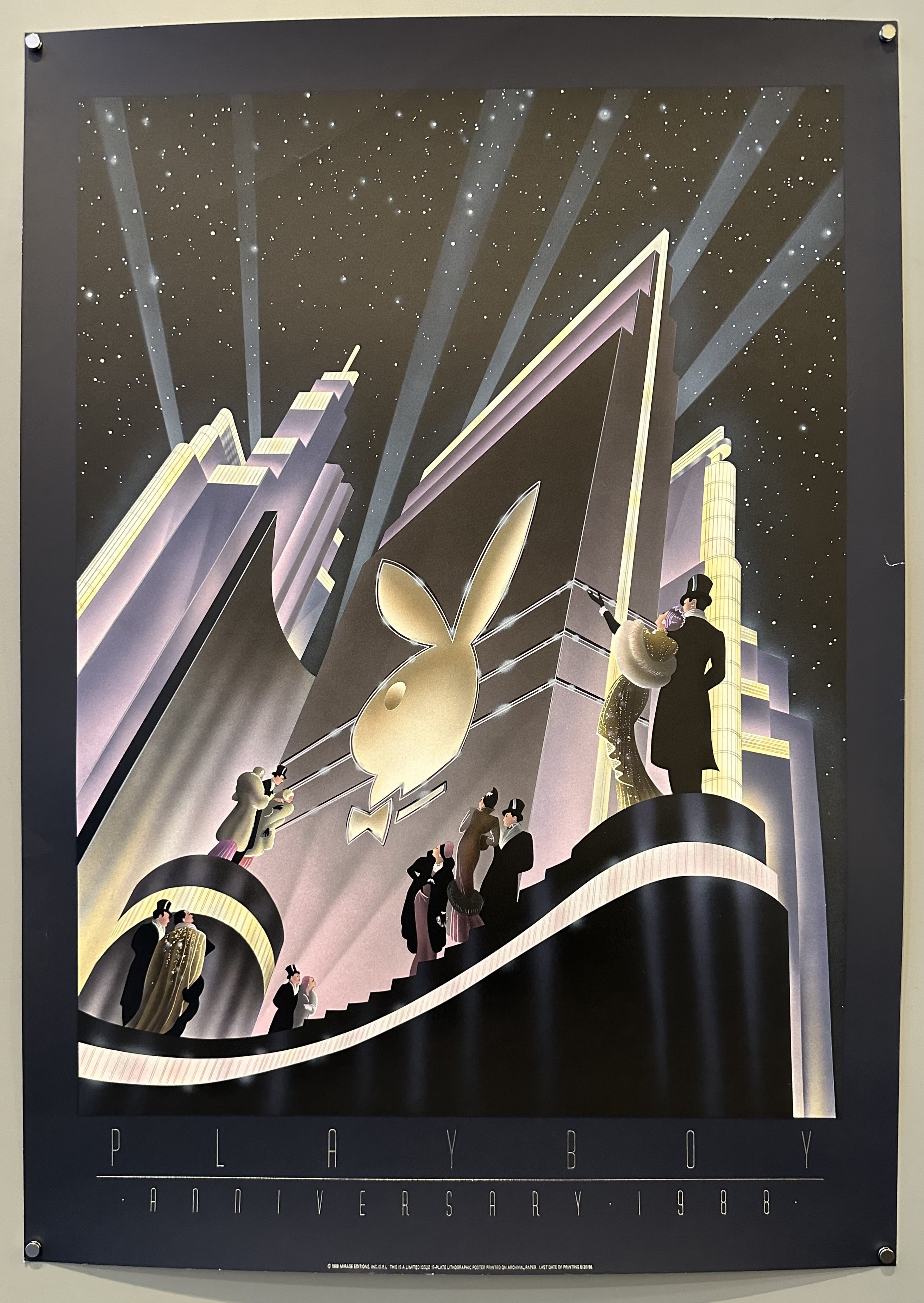 An enlarged poster printed on archival paper of the holiday anniversary cover of Playboy in January 1988.