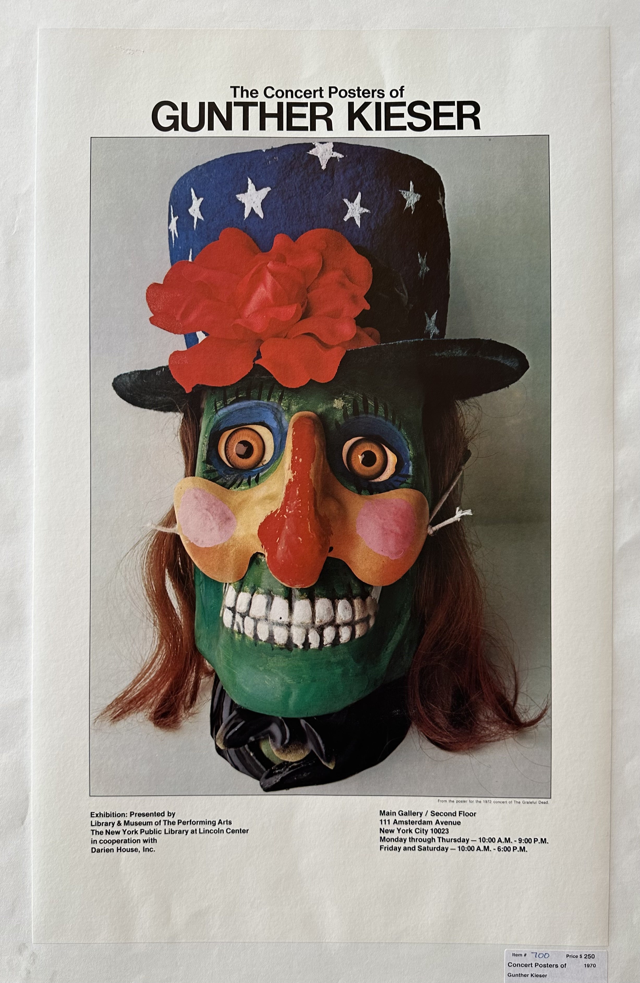 In this promotional poster for an exhibition of Gunther Kieser's work, his poster for the 1972 concert of the Grateful Dead is featured.