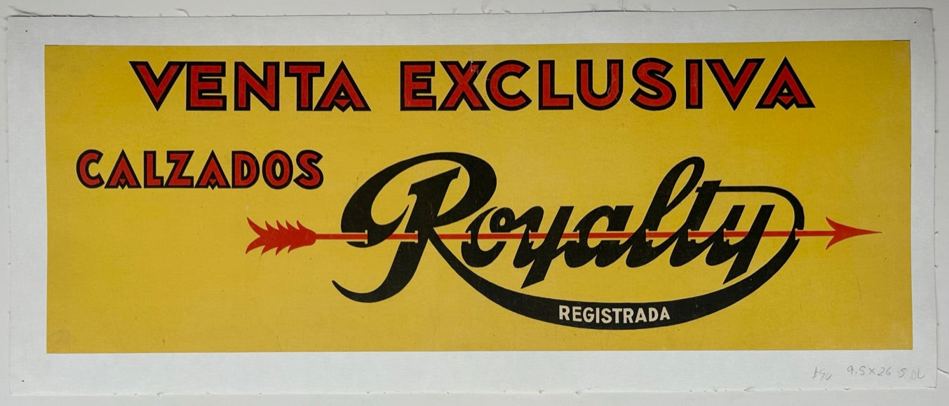 Original vintage poster for Royalty brand shoes. The cursive Royalty logo really emphasizes the high fashion footwear offered by the brand. Fit for royalty!