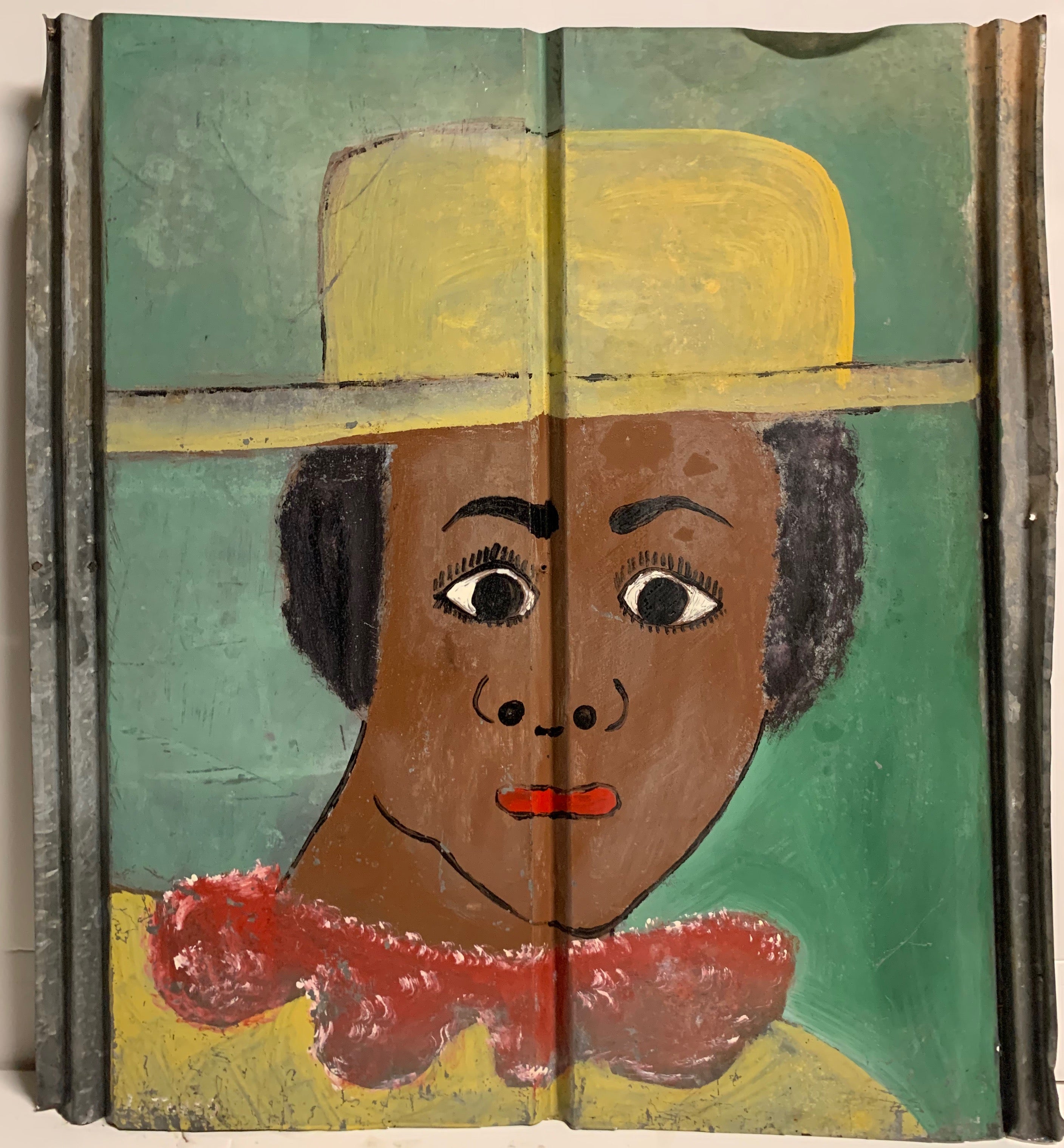 A Georgia local, Leonard Jones taught himself to paint when he was in high school. His works are greatly inspired by scenes from his childhood, images of rural living in the South including housewives, church-goers, and laborers. A folk artist who is often considered outsider, Jones paints to capture candid daily life and the beauty found in the community around him.The use of scrap wood or tin roofing alludes to the buildings he grew up with, and he often incorporates these materials into the paintings themselves. The materials are covered in bold backgrounds of color, which Jones paints subjects over using his fingers or the handles of brushes, leaving a distinctly Leonard Jones work of art.