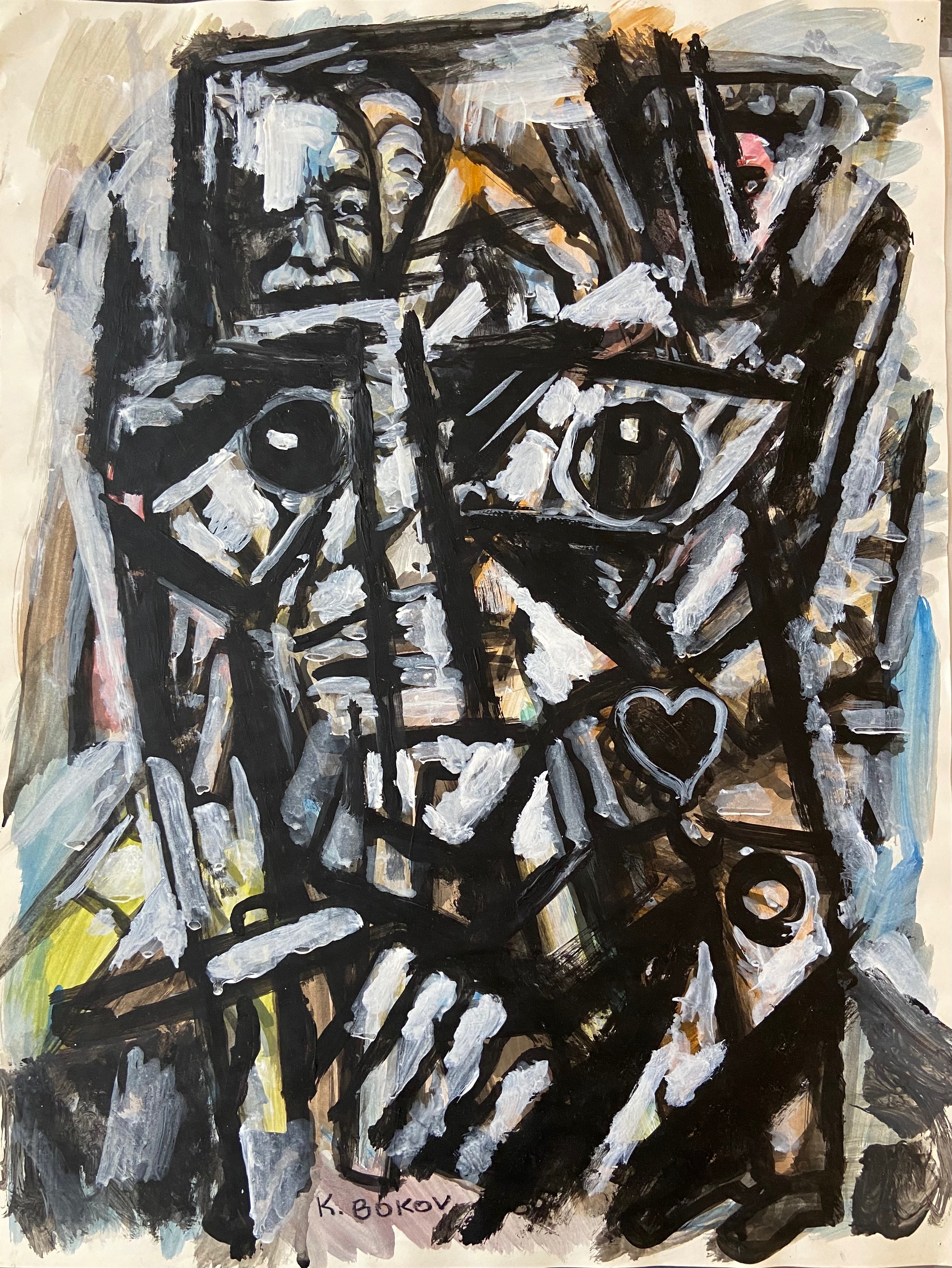 Konstantin Bokov is a Ukranian-American artist with a distinctly New York City influence. Bokov was born in 1940 in Shotska, Ukraine. A love for art ran in his family—his father is the renowned Soviet poet and songwriter Viktor Bokov—and at their behest Bokov attended the Art Academy of Leningrad in St. Petersburg to study music. Upon graduating university Bokov moved to Moscow, and it was there that Bokov saw Van Gogh’s painting, Red Sunset. The painting was a transcendent experience, and it convinced Bokov that his future lay not in music but rather visual art. In 1974, Bokov immigrated to New York City and started his art career, creating paintings, found-object sculptures, and public installations. He was a member of the Rivington School, a movement that originated from the East Village art scene of the 80s. Bokov’s art feels like a window into this bygone era of the city, and scenes of everyday city life are common themes in his work.