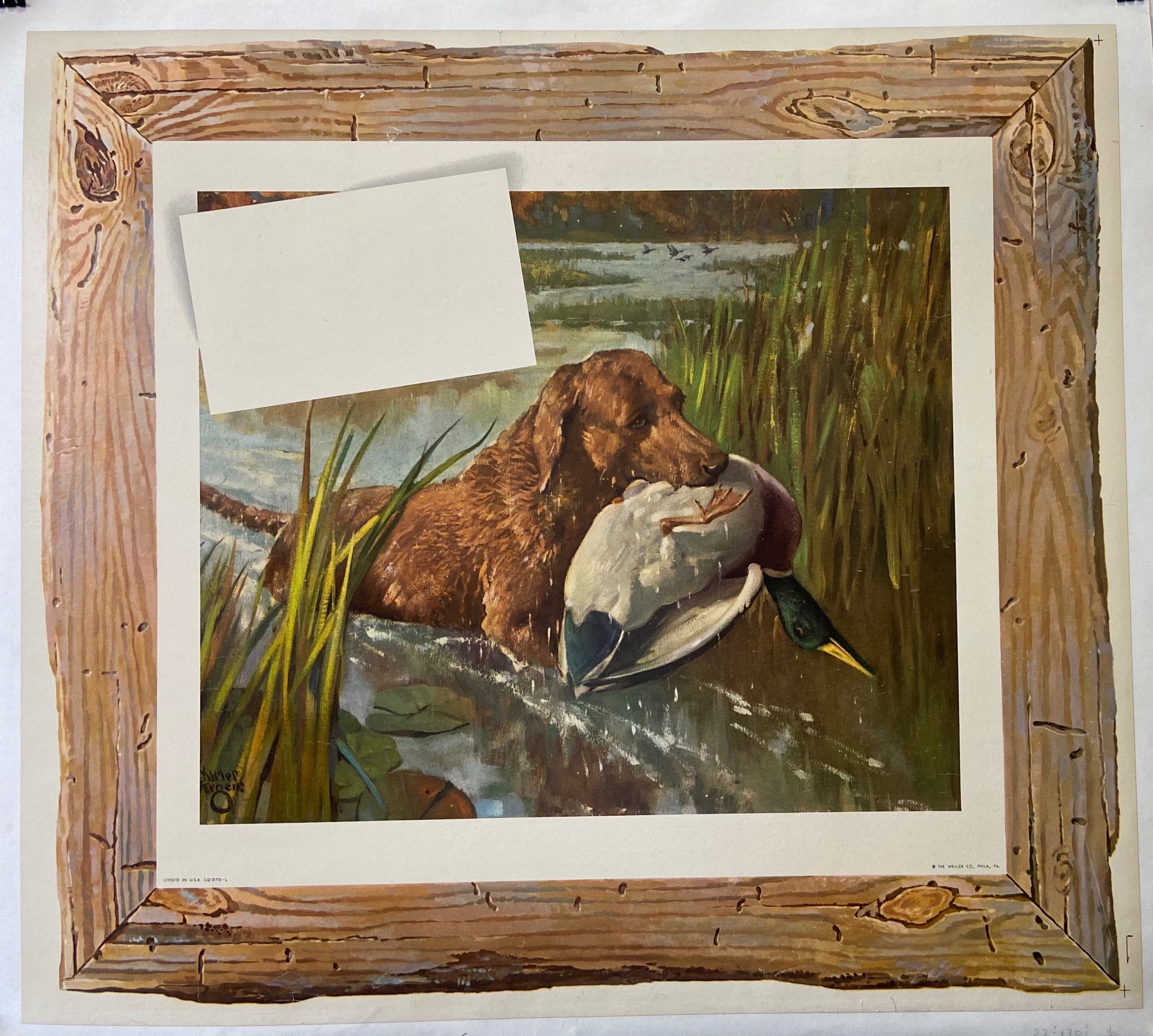 100-250 animal dachshund dog horizontal poster hunting mallard original poster print size-28x31 vintage poster