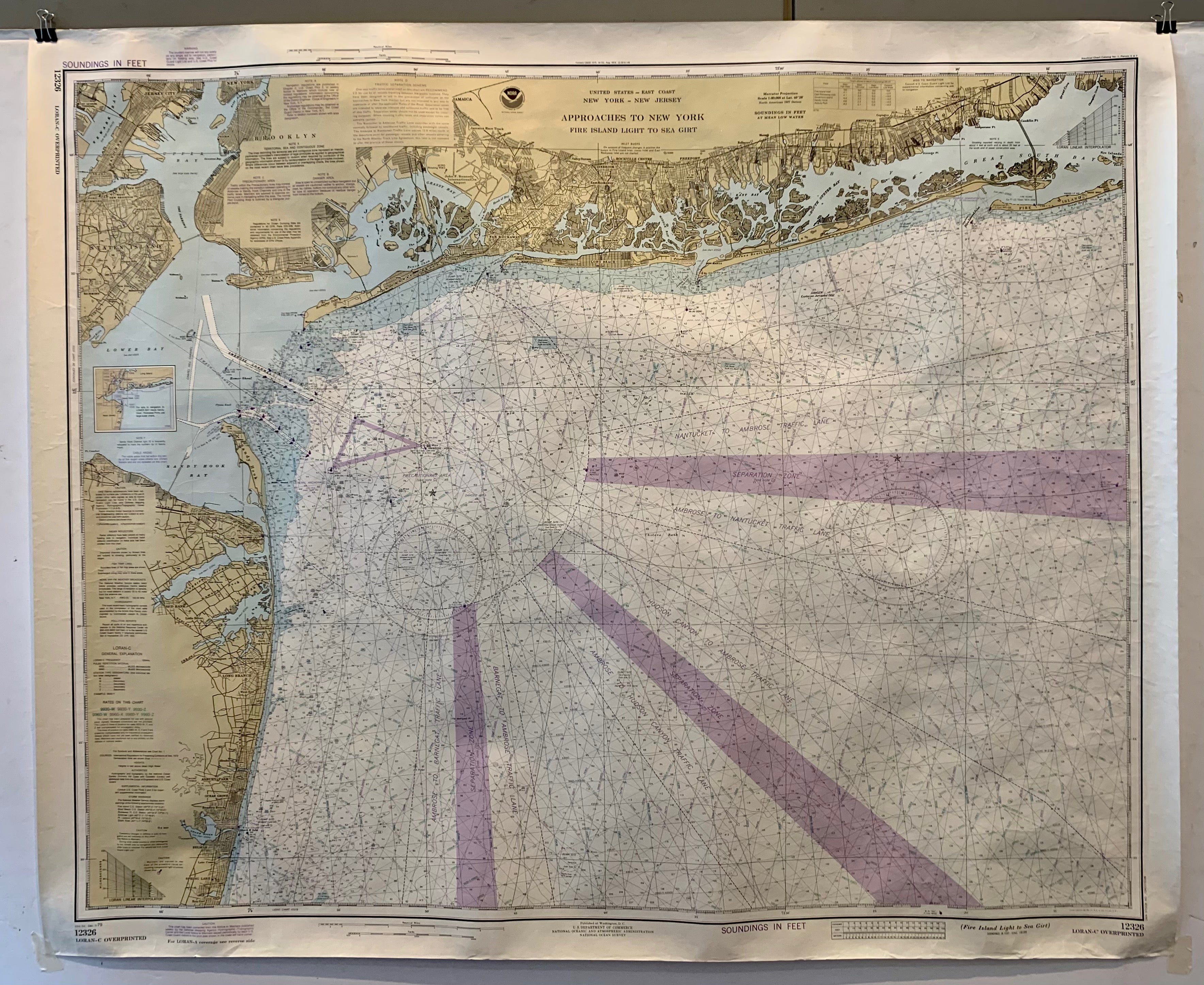 The National Oceanic and Atmospheric Administration (NOAA) created and distributed this map of various points of entry into New York for informational purposes amongst both commercial and recreational mariners by providing soundings in feet, locations of radar reflectors, and a logarithmic speed scale.