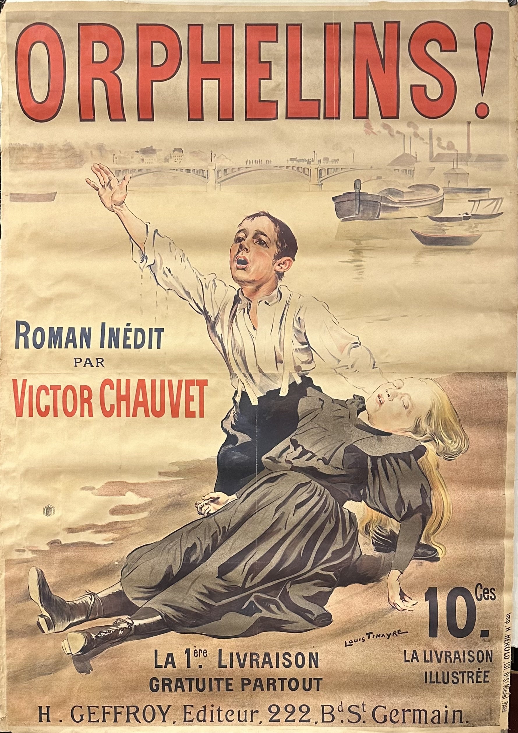 English translation: "Orphans! / Unpublished novel by Victor Chauvet / The 1st Free Delivery Everywhere / 10ces. The Illustrated Delivery"