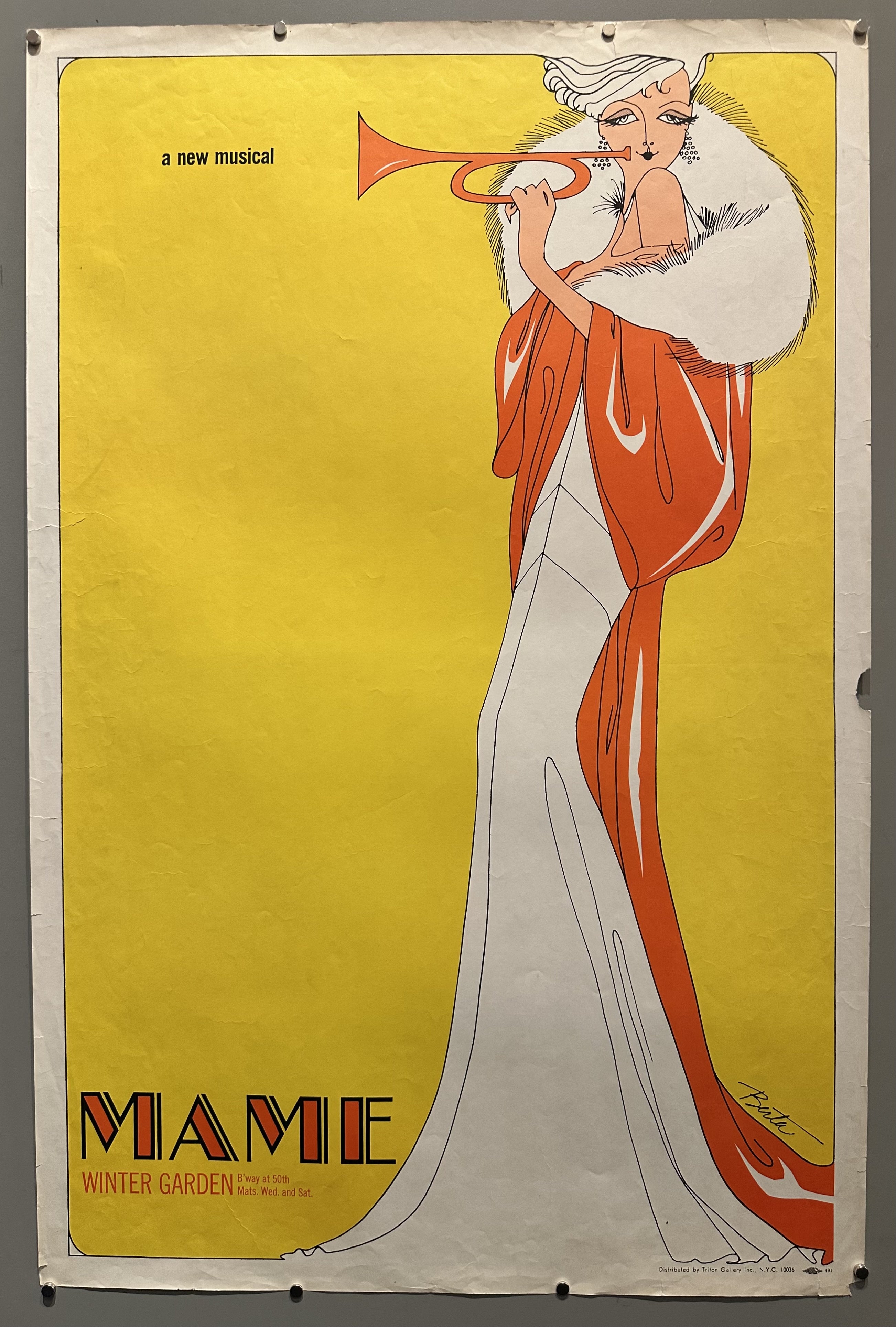 250-500 art deco broadway Mame Broadway medium musical poster size-38x25 trumpet vintage poster yellow
