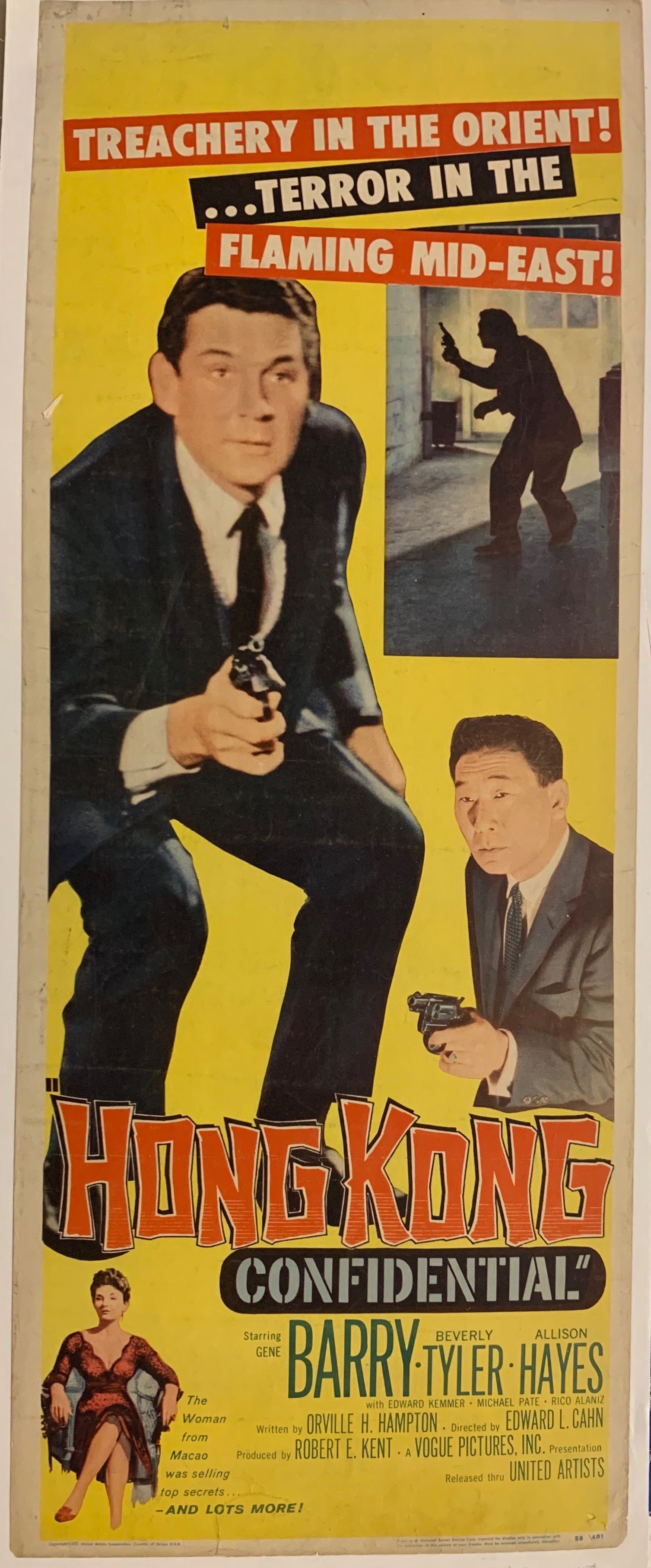 Hong Kong Confidential vintage film poster from 1950s. Treachery in the orient, terror in the flaming mid-East.
