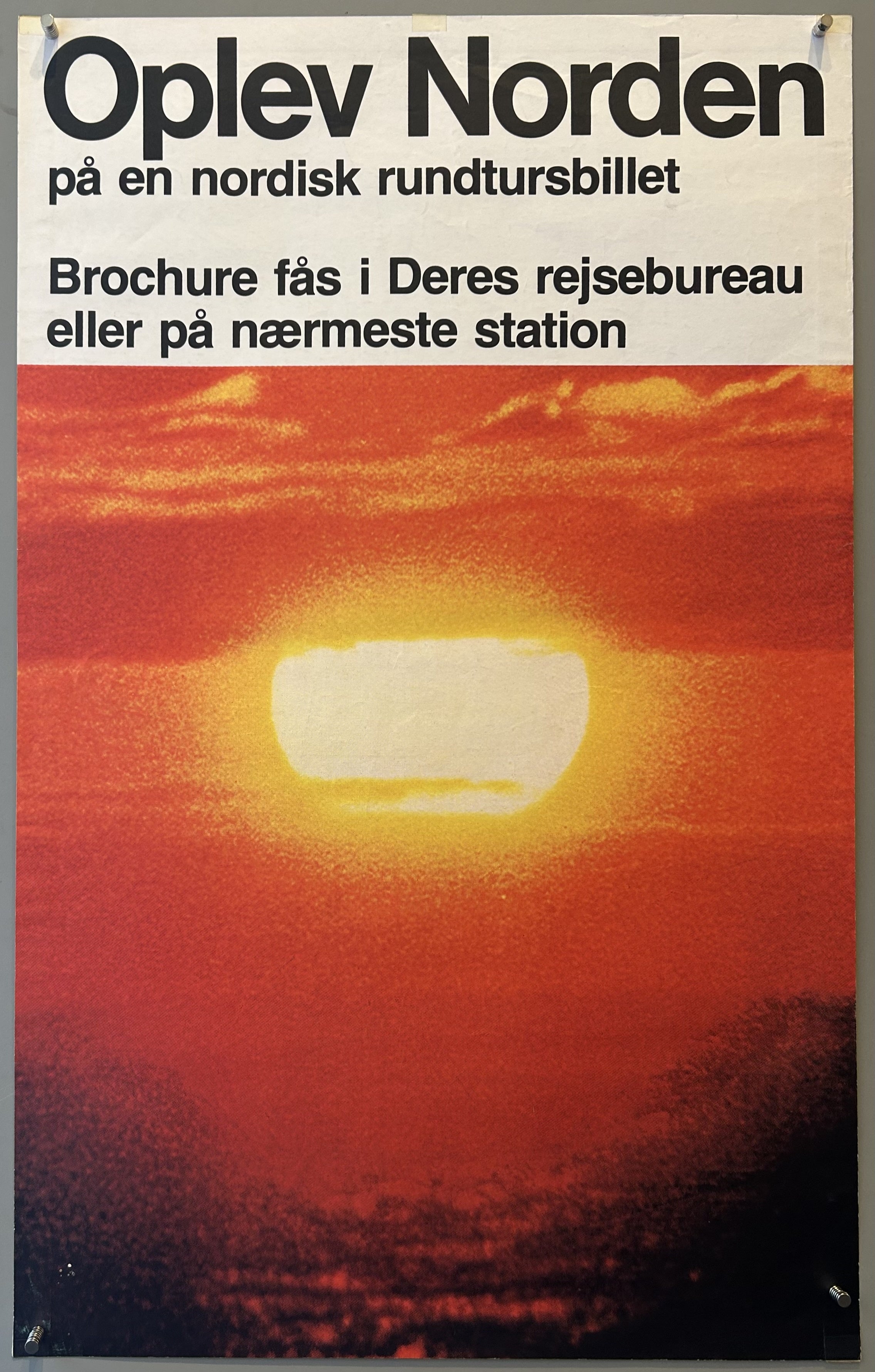English Translation: "Experience the Nordics / on a Nordic round-trip ticket / Brochure available from your travel agency or at the nearest station"