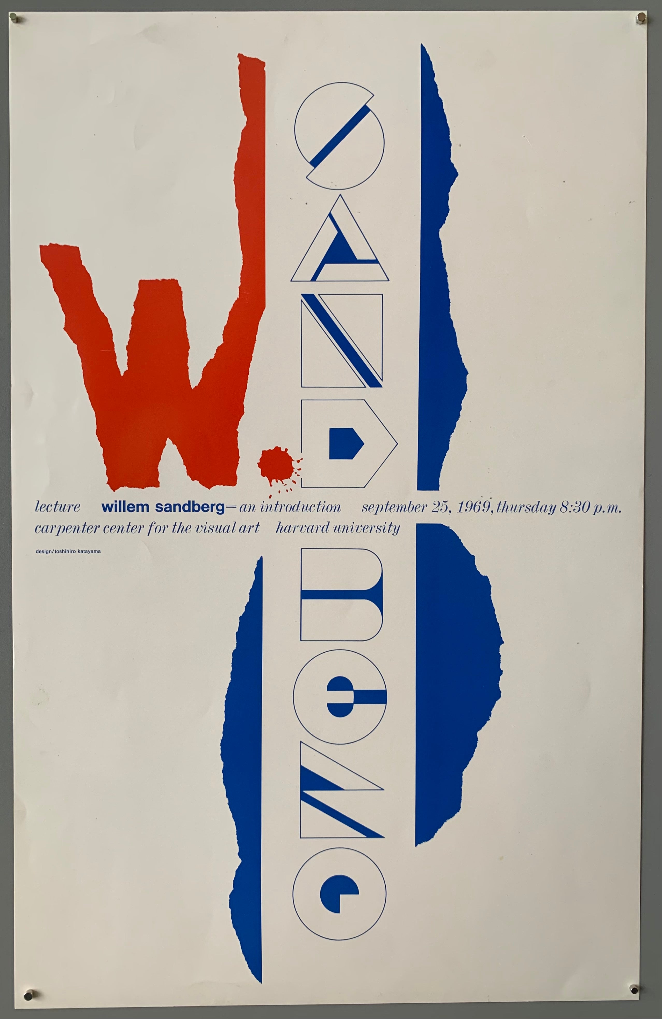 This lecture by Willem Sandberg took place at Harvard University's Carpenter Center for the Visual Arts. Sandberg was a Dutch typographer, museum curator, and member of the Dutch resistance during World War II. This poster takes inspiration from Sandberg's work. While his legacy is not well-known today, he was known for enlisting his colleagues and using his design skills to create false documents, allowing Jews safe passage out of The Netherlands.