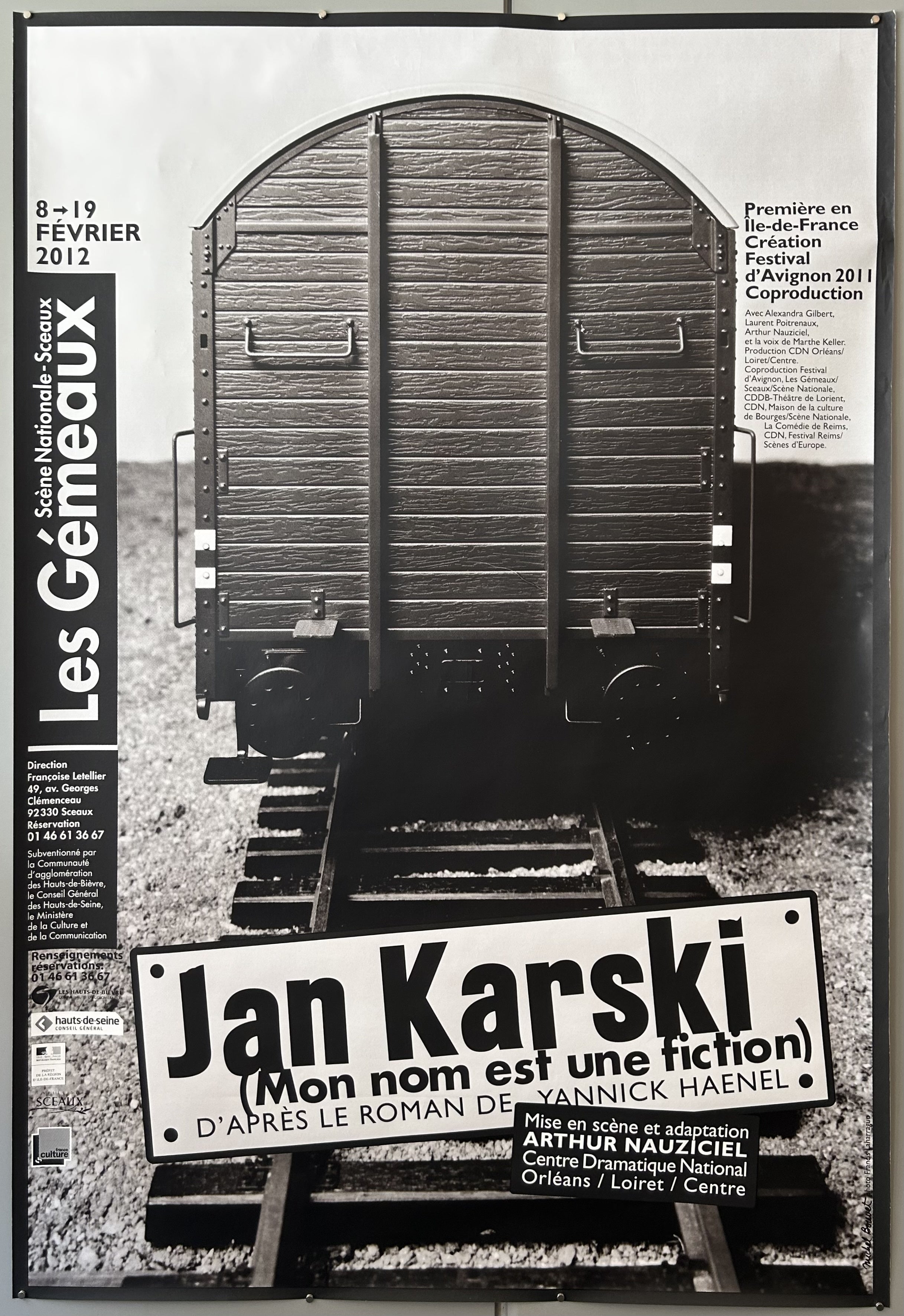 Promotional poster for a French play based on the story of Jan Karski, a Polish resistance fighter who witnessed the Holocaust and tried to alert the Allies to the extermination of Jews. The play, directed by Arthur Nauzyciel, uses Yannick Haenel's novel of the same name, which fictionalizes Karski's experiences, as its source material.