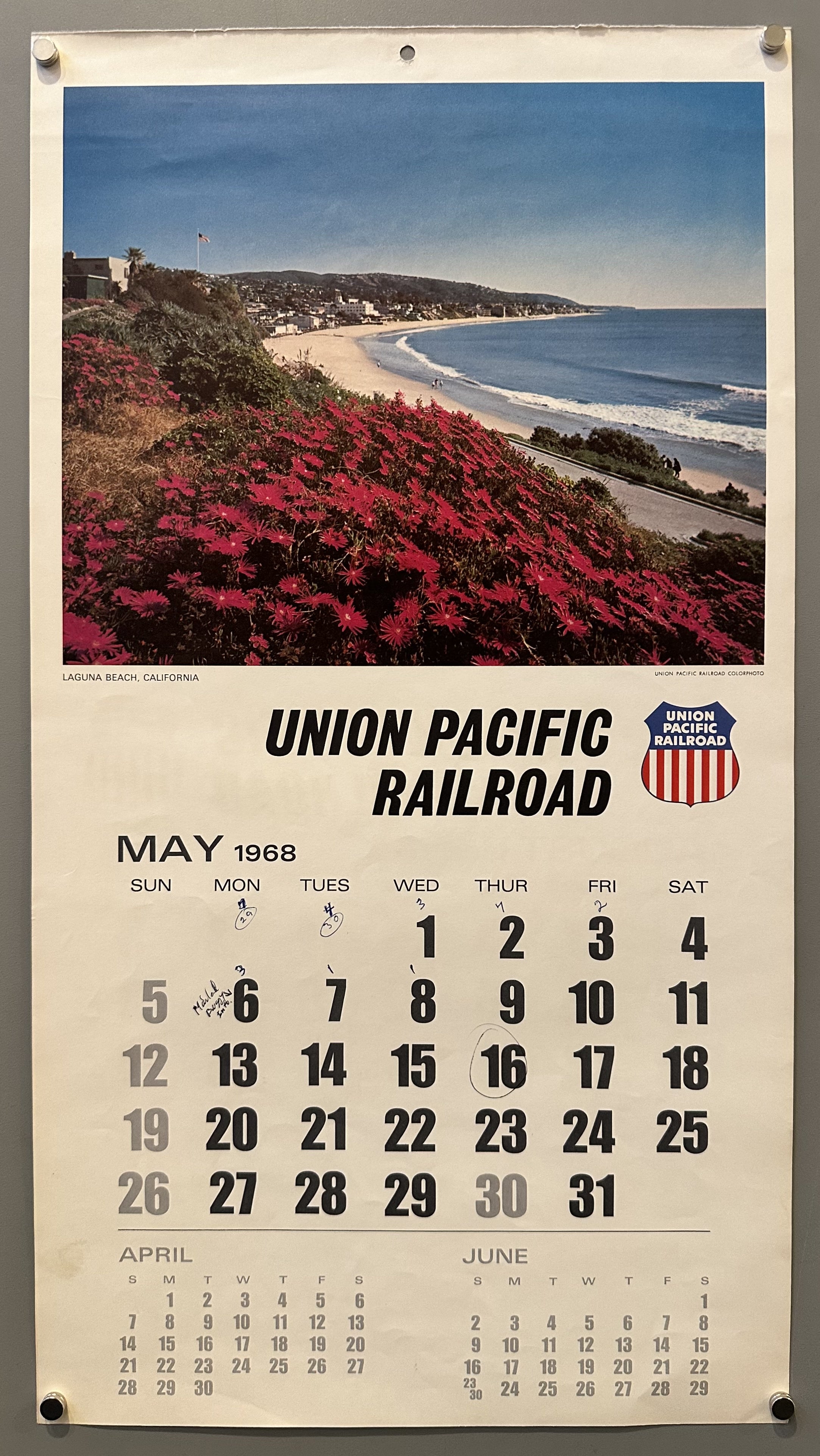Union Pacific Railroad Calendar May/August 1968