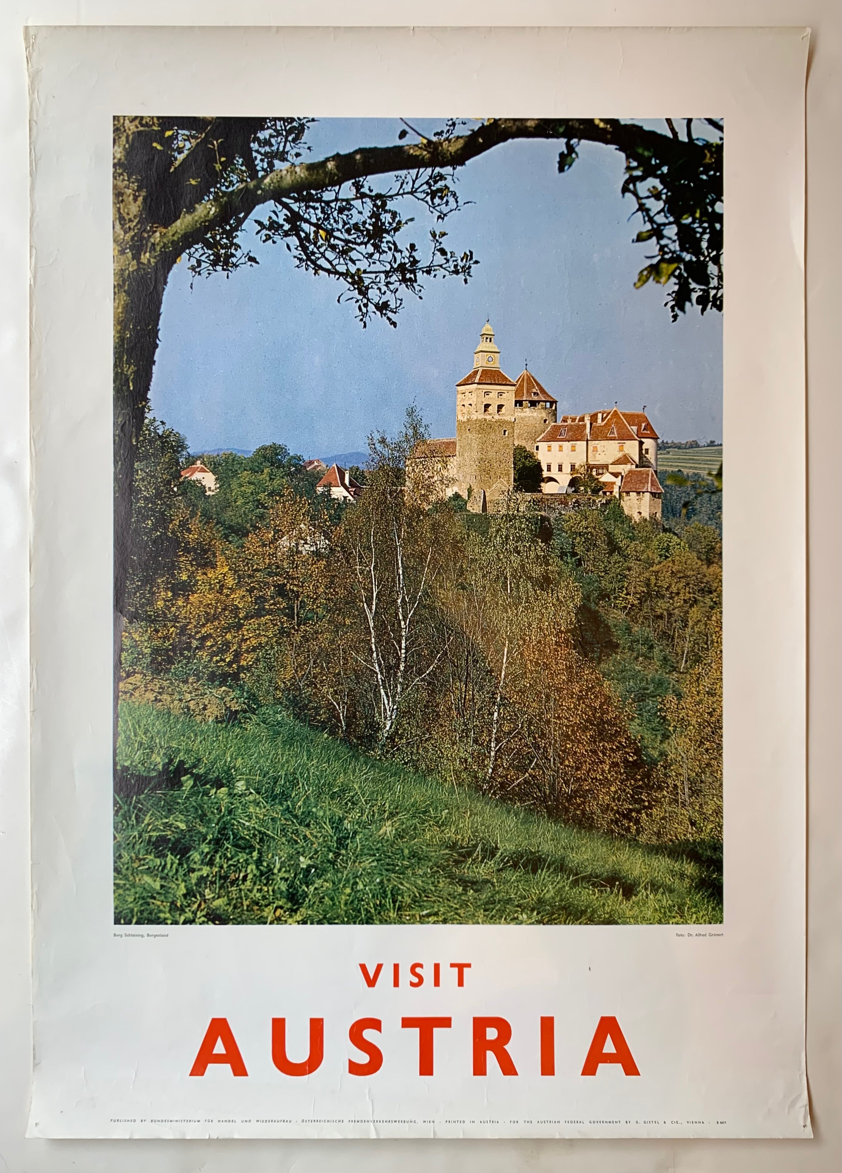 Vintage travel poster featuring a photograph of Burg Schlaining, a castle in Stadtschlaining.