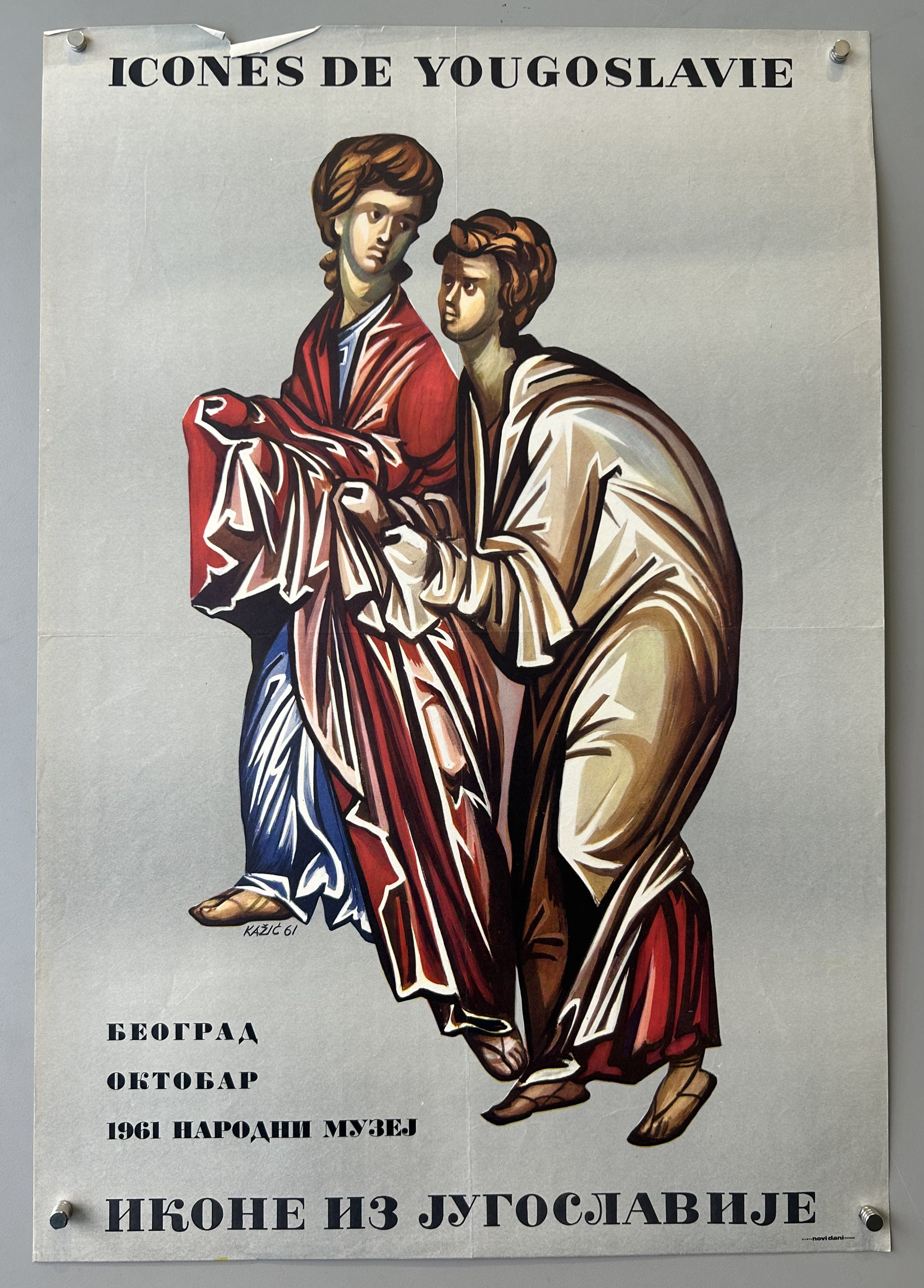 English Translation: "Icons of Yugoslavia / BELGRADE / OCTOBER / 1961 NATIONAL MUSEUM / ICONS FROM YUGOSLAVIA"