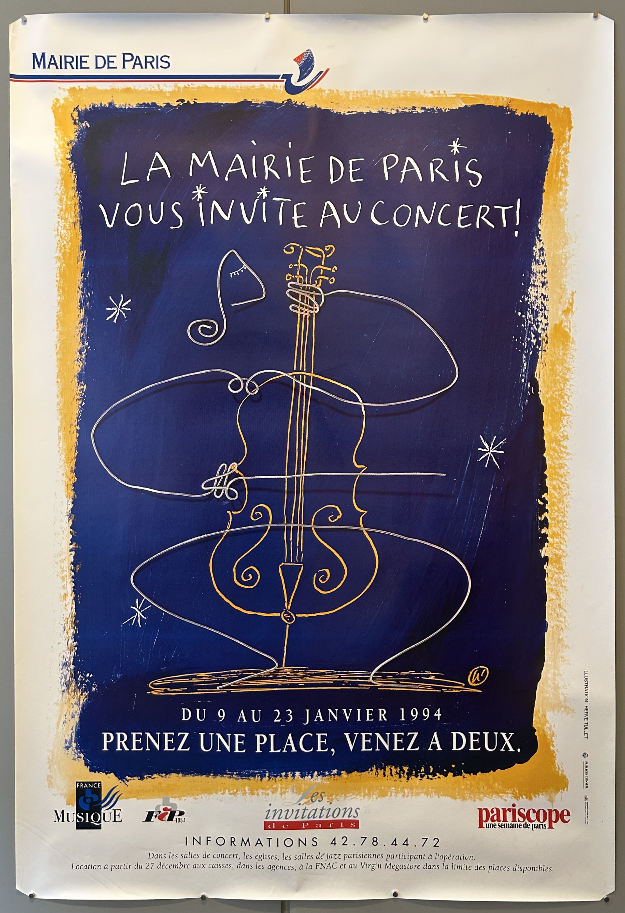 The Mairie de Paris (City Hall of Paris) inviting people to a concert series held from January 9 to 23, 1994