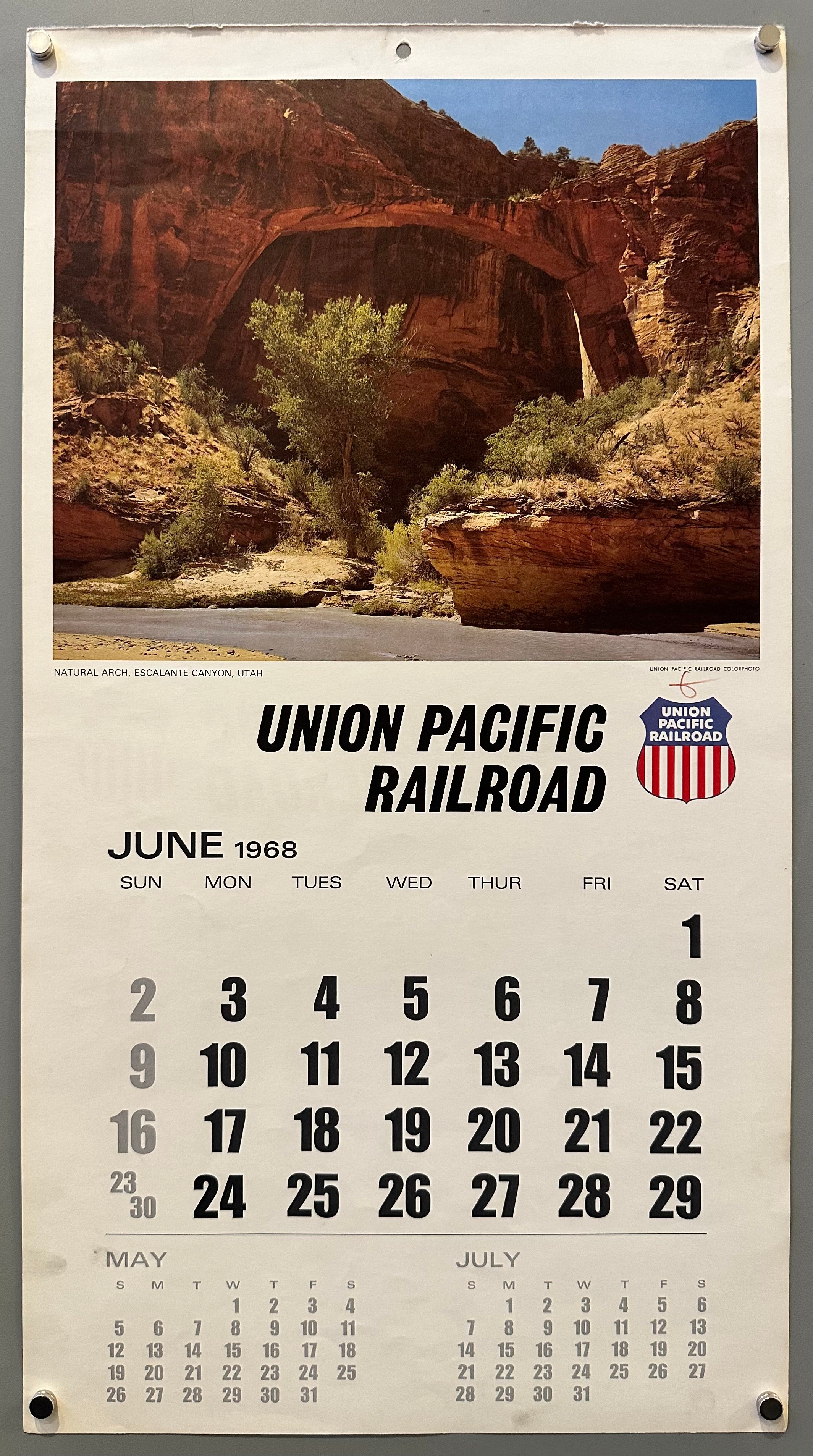 Union Pacific Railroad Calendar June/July 1968