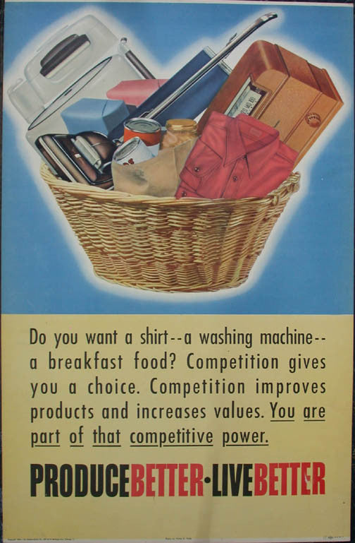 "Do you want a shirt -- a washing machine -- a breakfast food? Competition gives you a choice. Competition improves products and increases values. You are part of that competitive power."